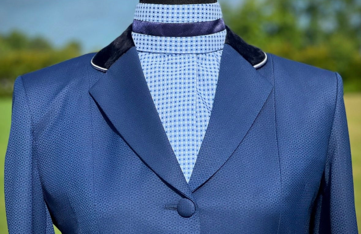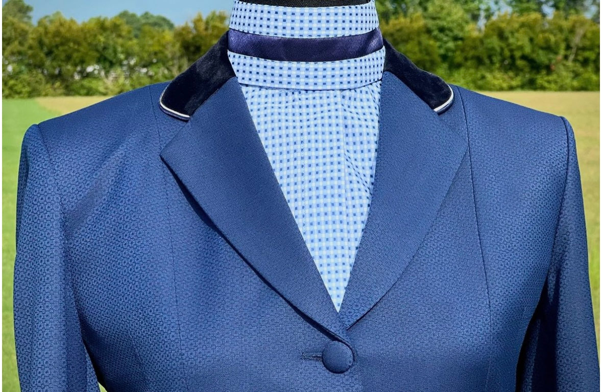 Navy Boo Yah hunt jacket with double Navy/White piping on the collar. Size 6. Please refer to size chart.