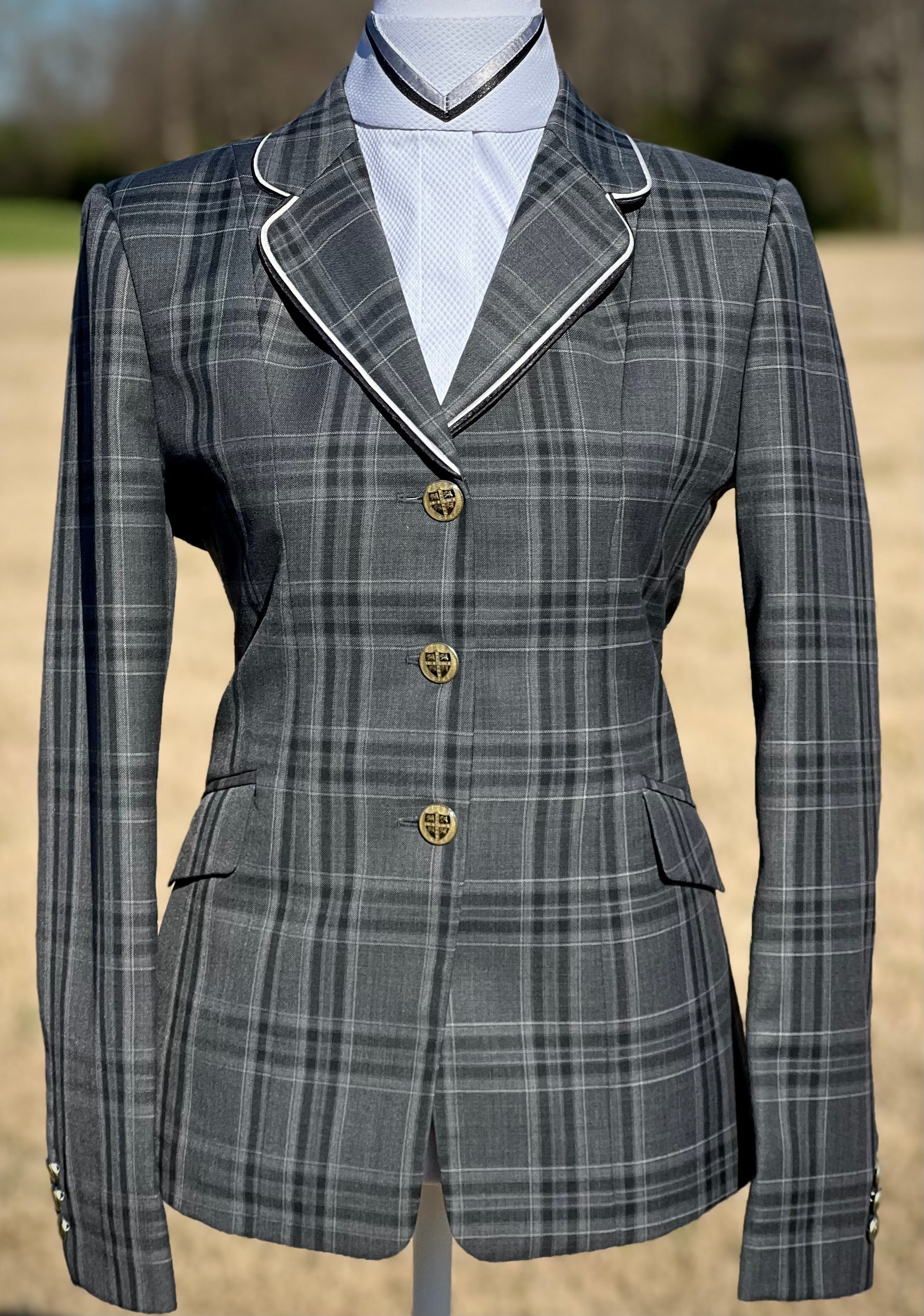 Boo Yah Silver Hunt Shirt with Black Thick Piping & Silver Thin Piping Collars - Size 38