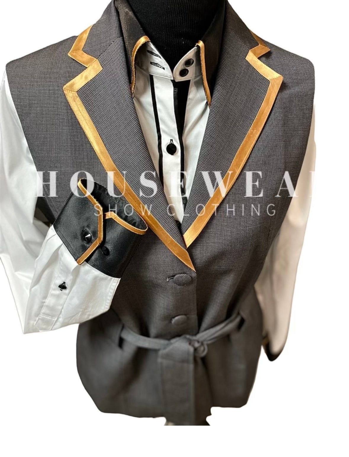 HouseWear Tailored Collection Black & Gold Print Vest - Size 14