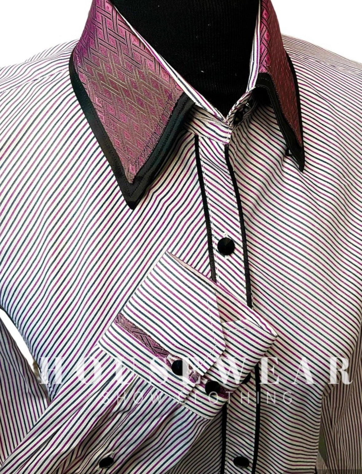 HouseWear Tailored Collection Deep Purple, White & Black Stripe - Medium