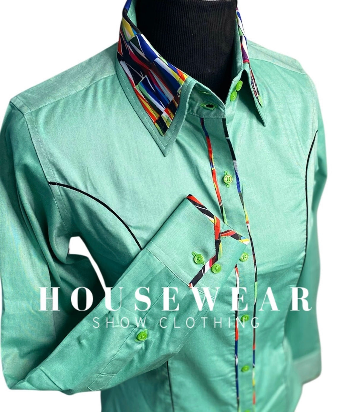 HouseWear Tailored Collection Pale Green & Stripe Print- Small
