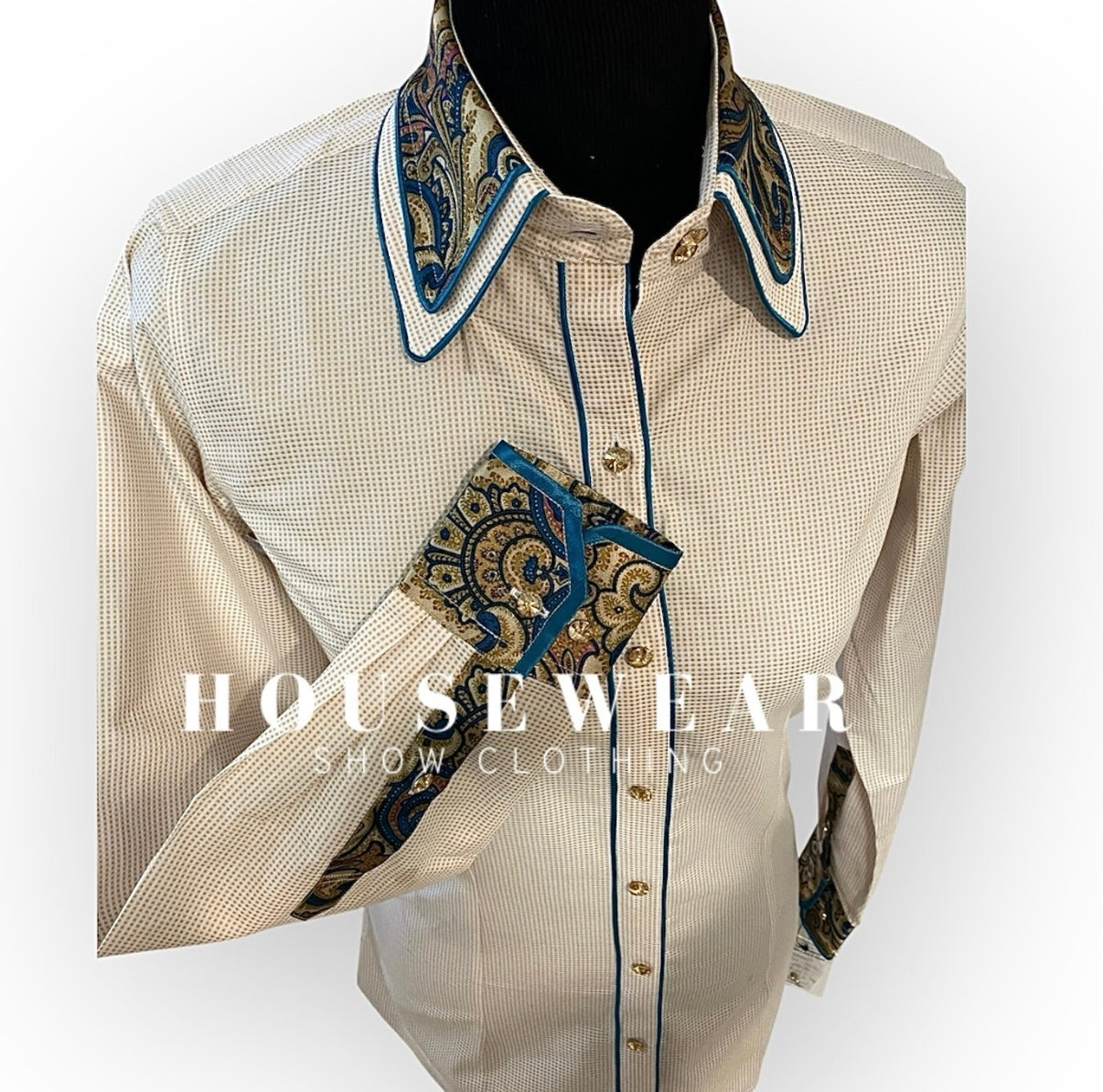 HouseWear Tailored Collection Gold Print with Teal Blue - Small
