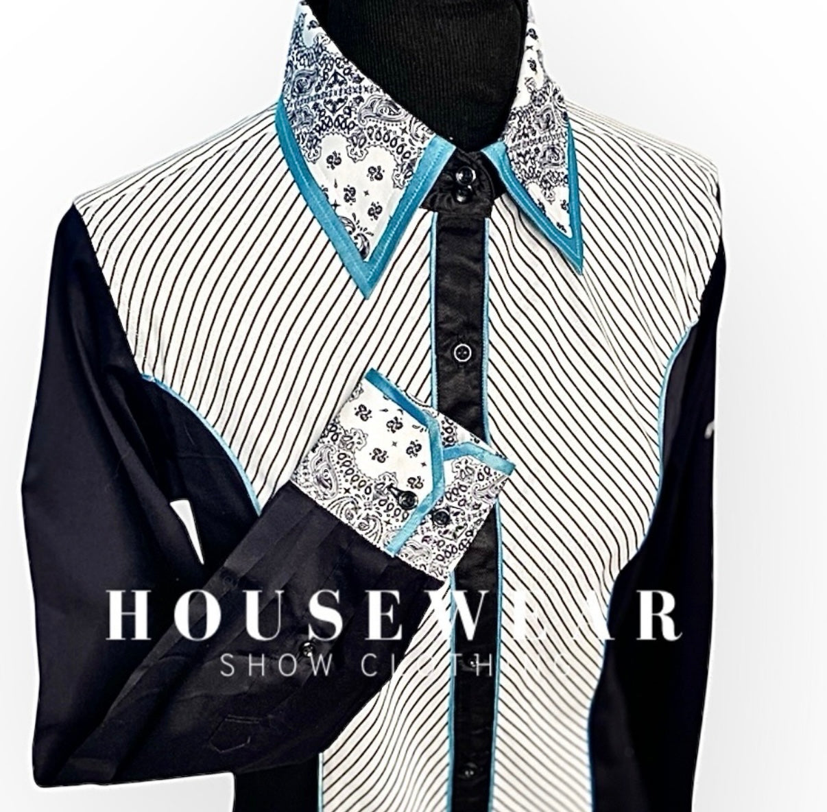 HouseWear Tailored Collection White & Black Stripe with Turquoise - Large