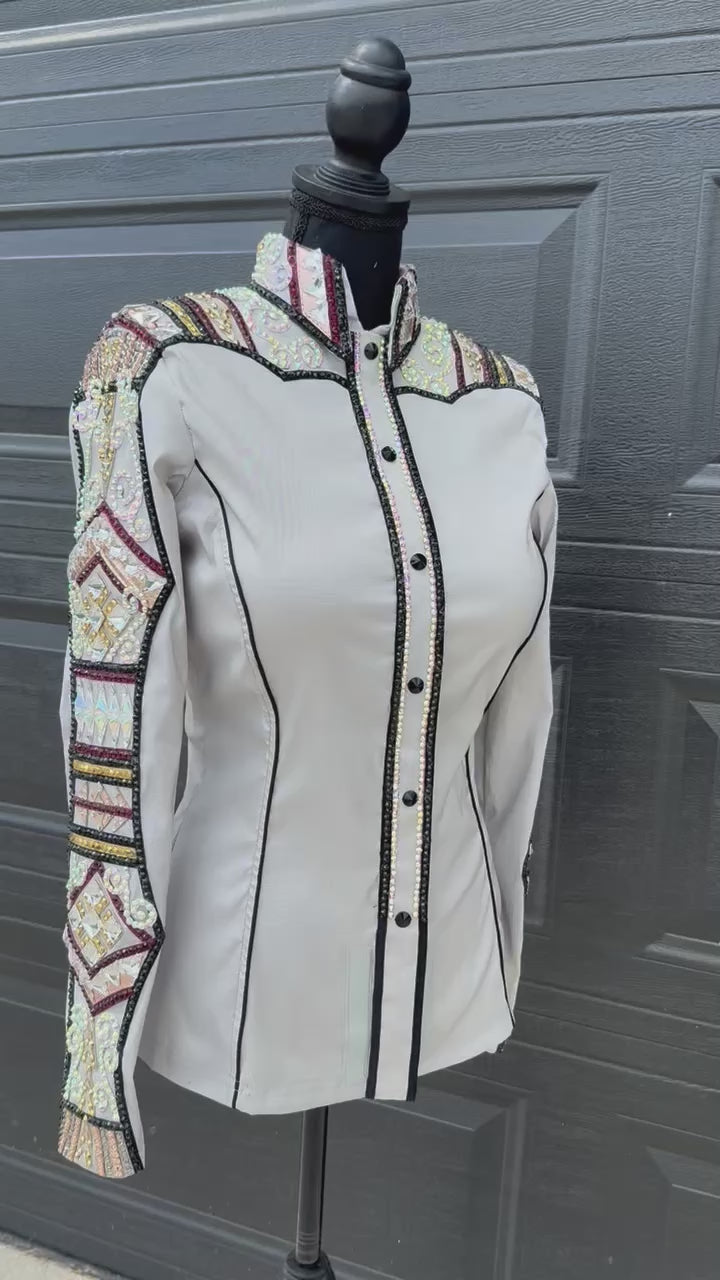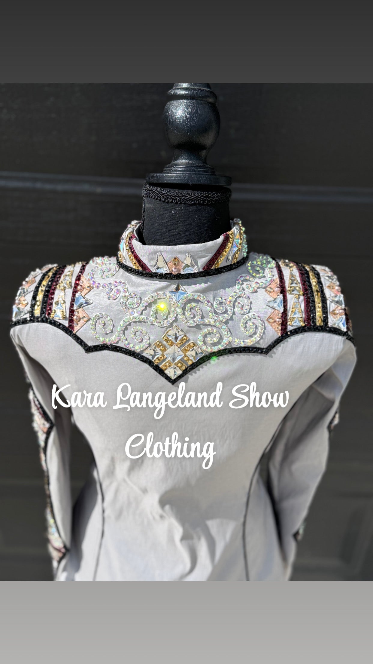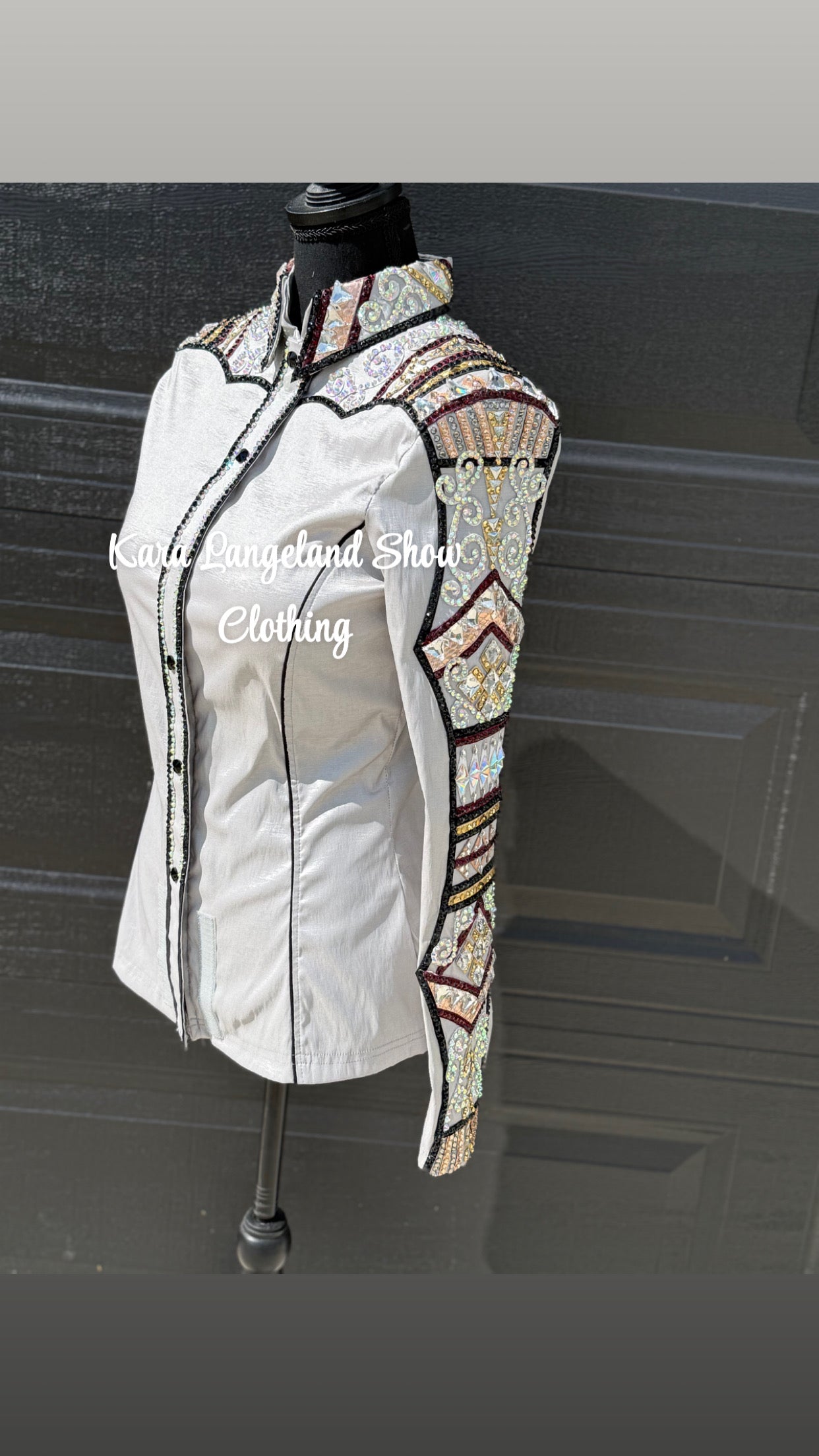 Brand new with tons of stone work! Detailed full sleeve day shirt - Stretch taffeta material with 3" of alteration room.