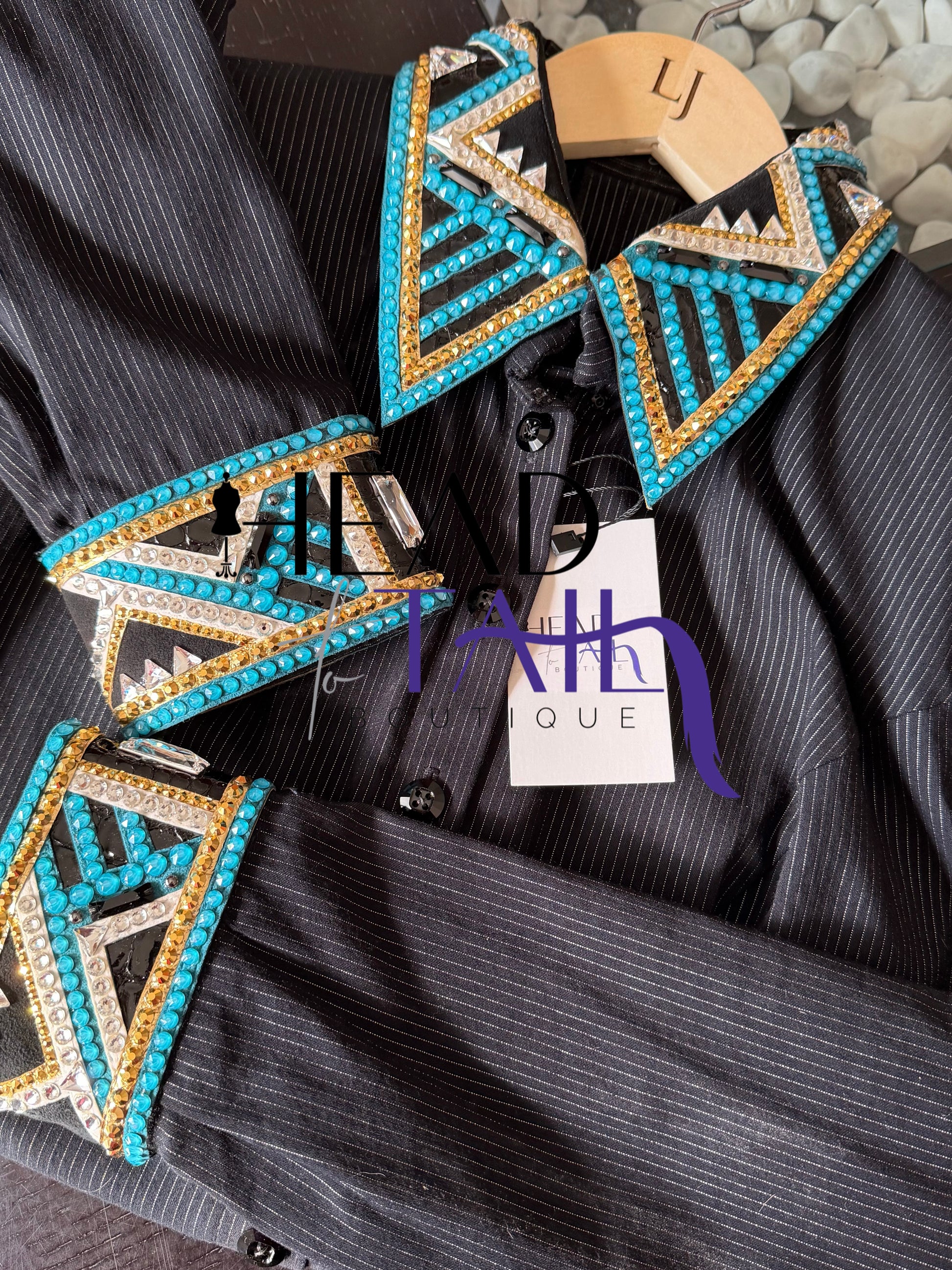 Lindsey James Black Pinstripe w/ Turquoise & Gold Accents - X-Large