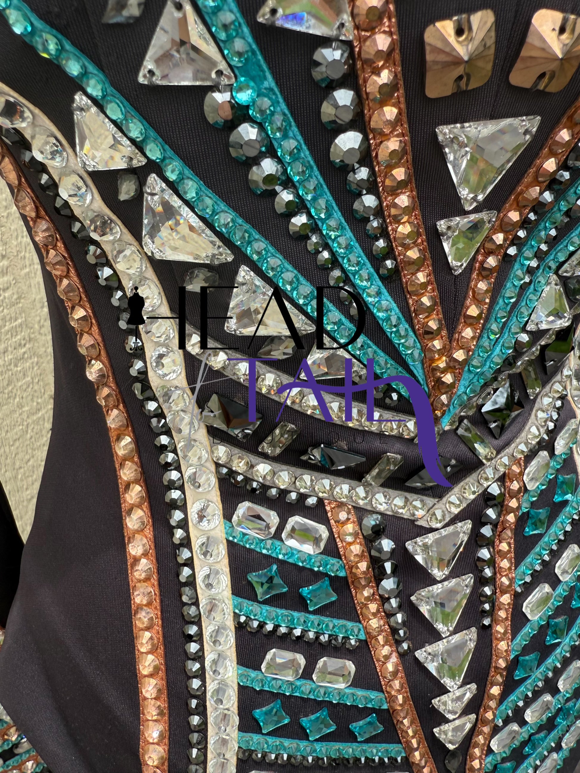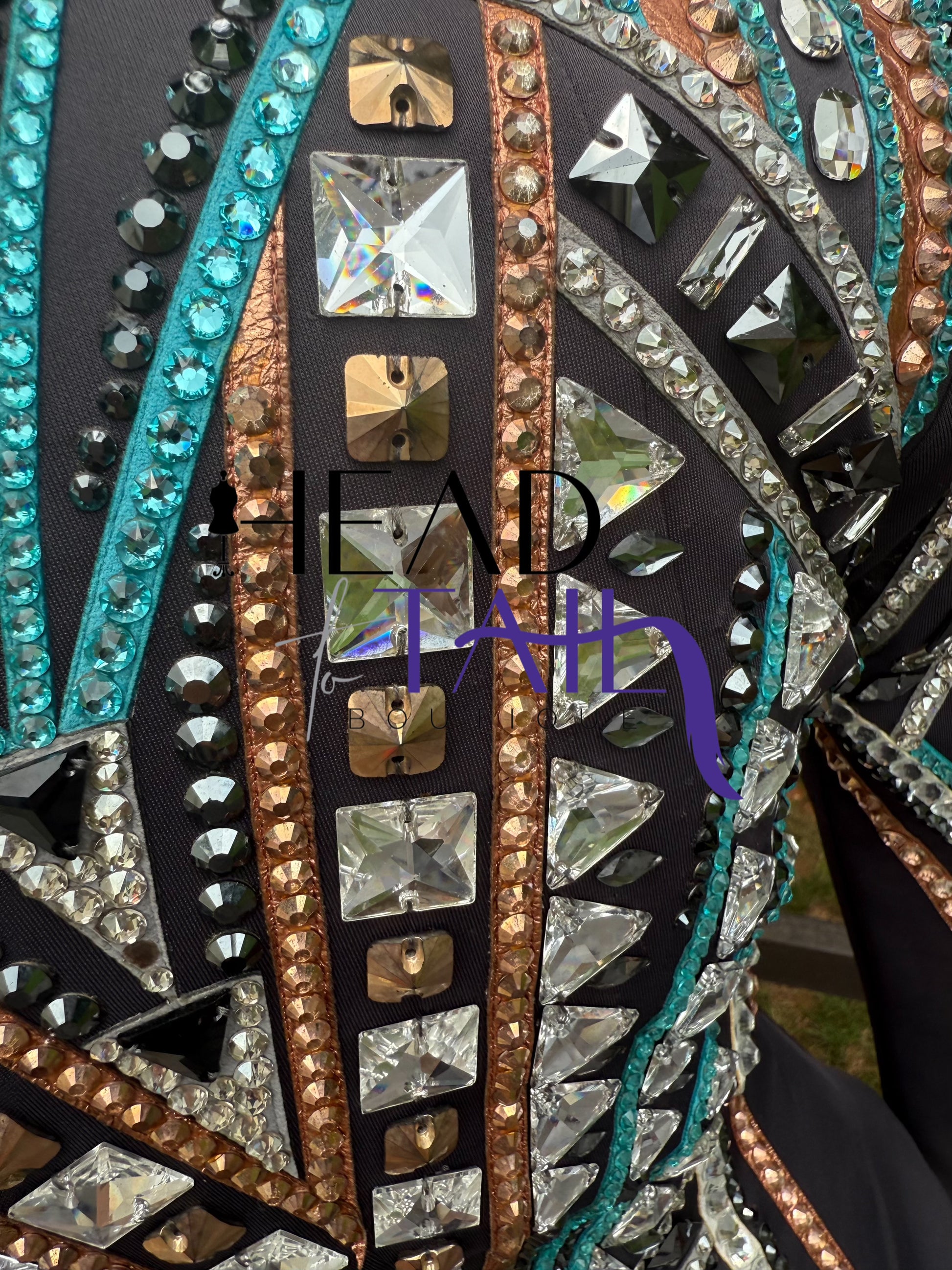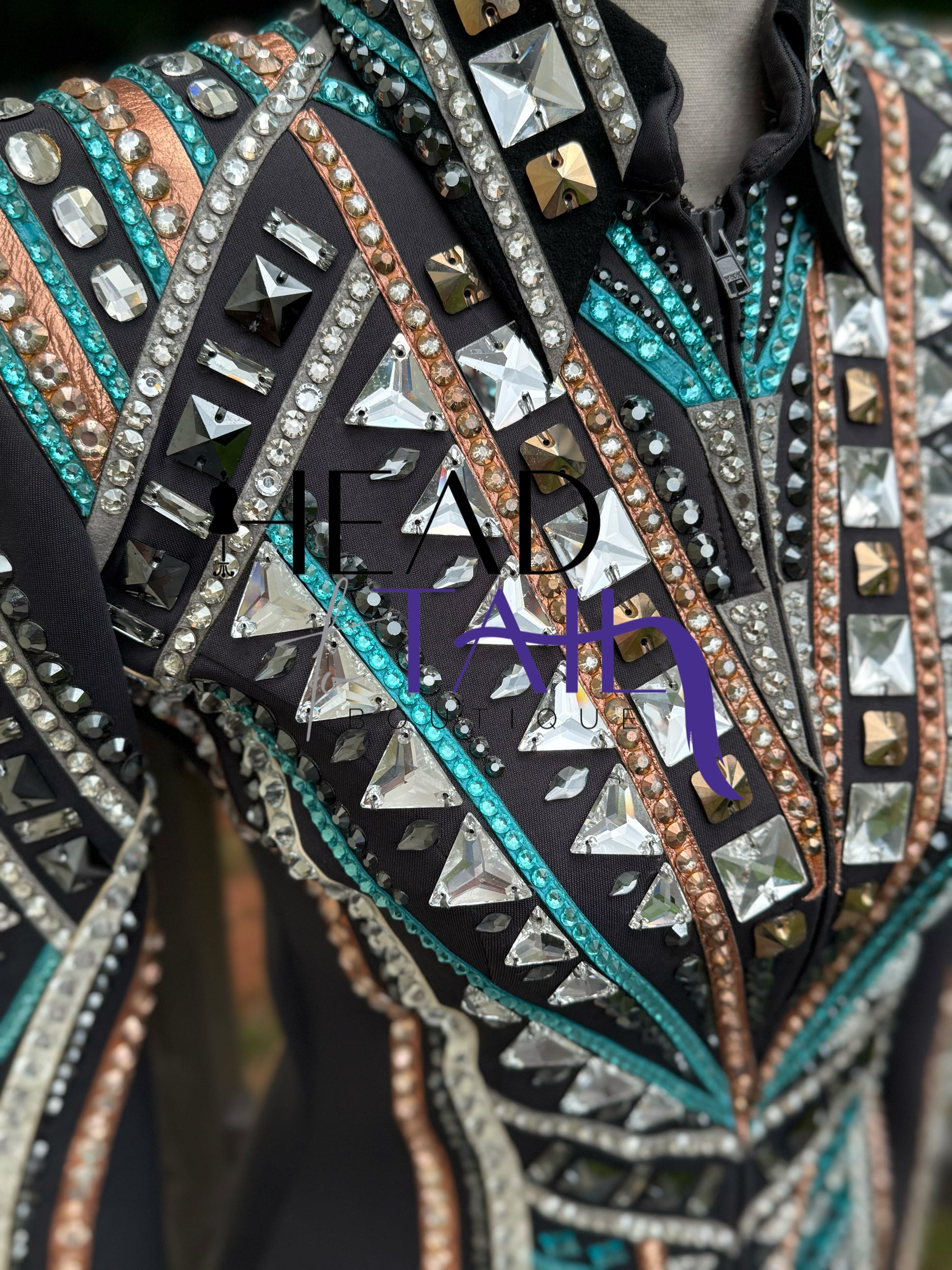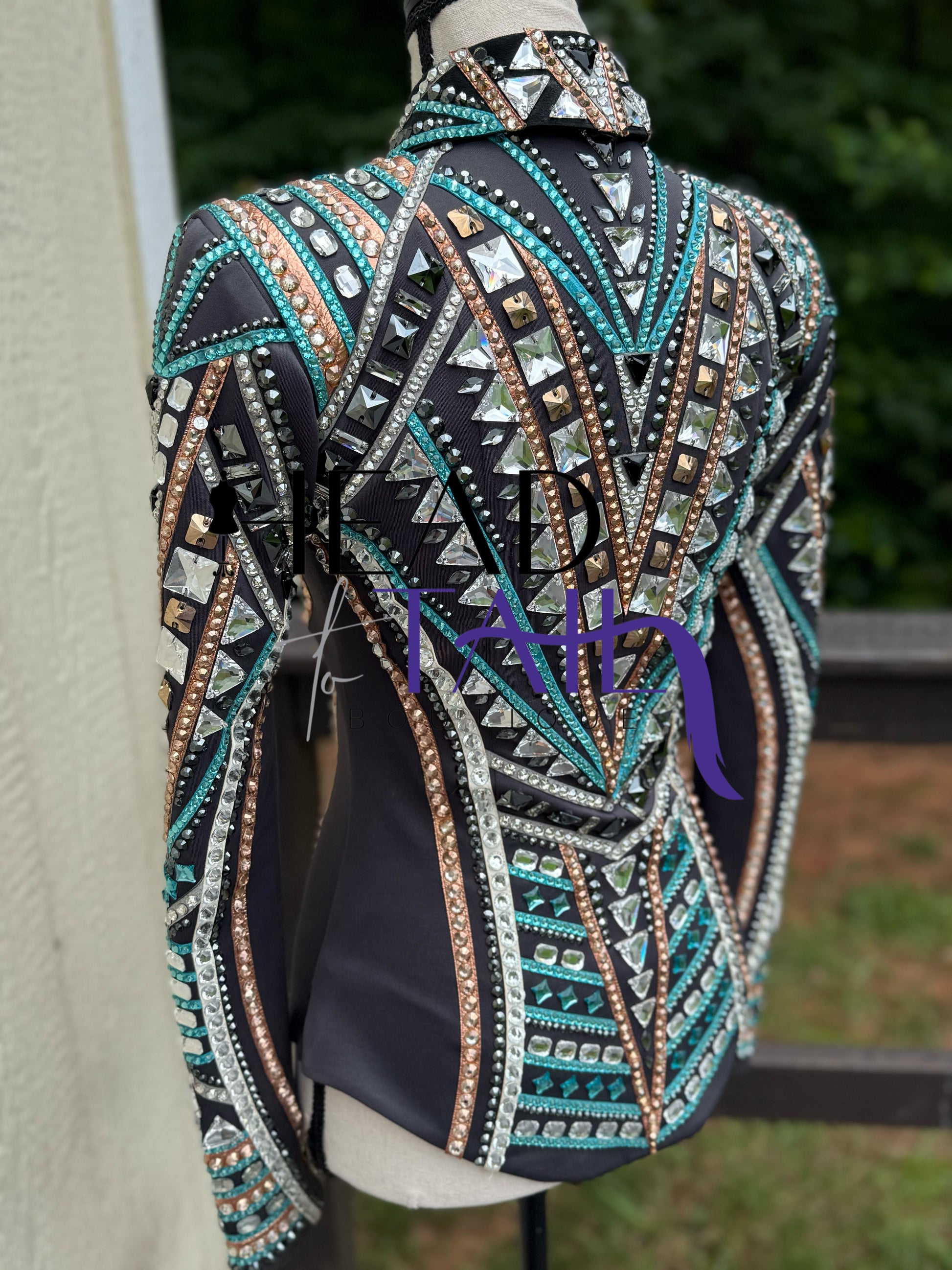 Lindsey James Show Clothing Teal, Rose Gold & Silver Showmanship Jacket - Youth Large/Adult X-Small