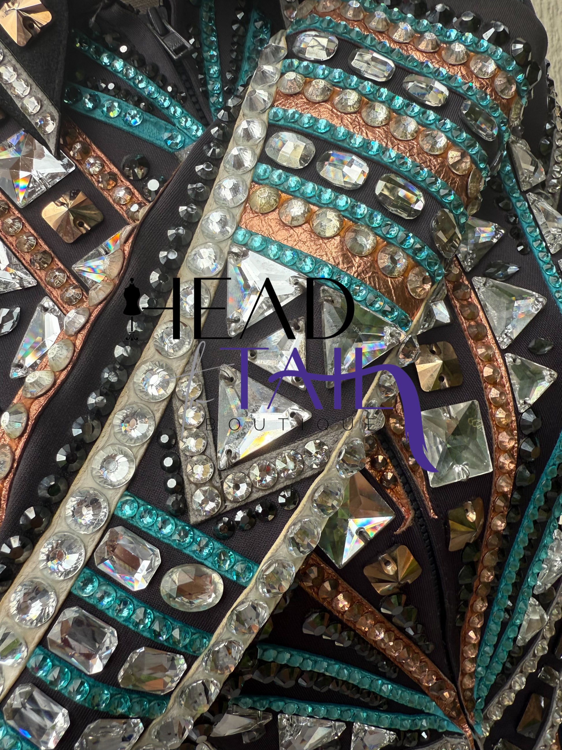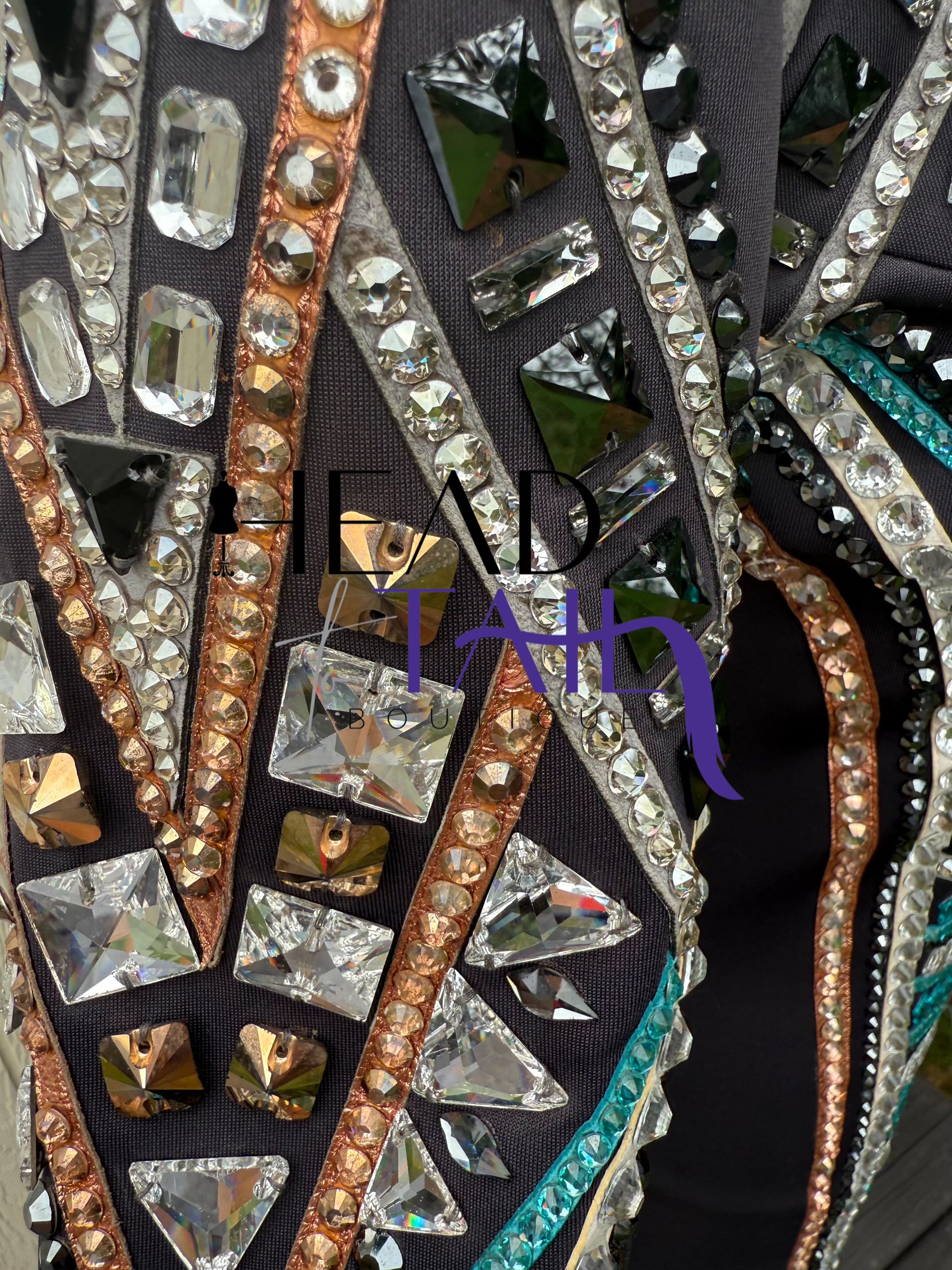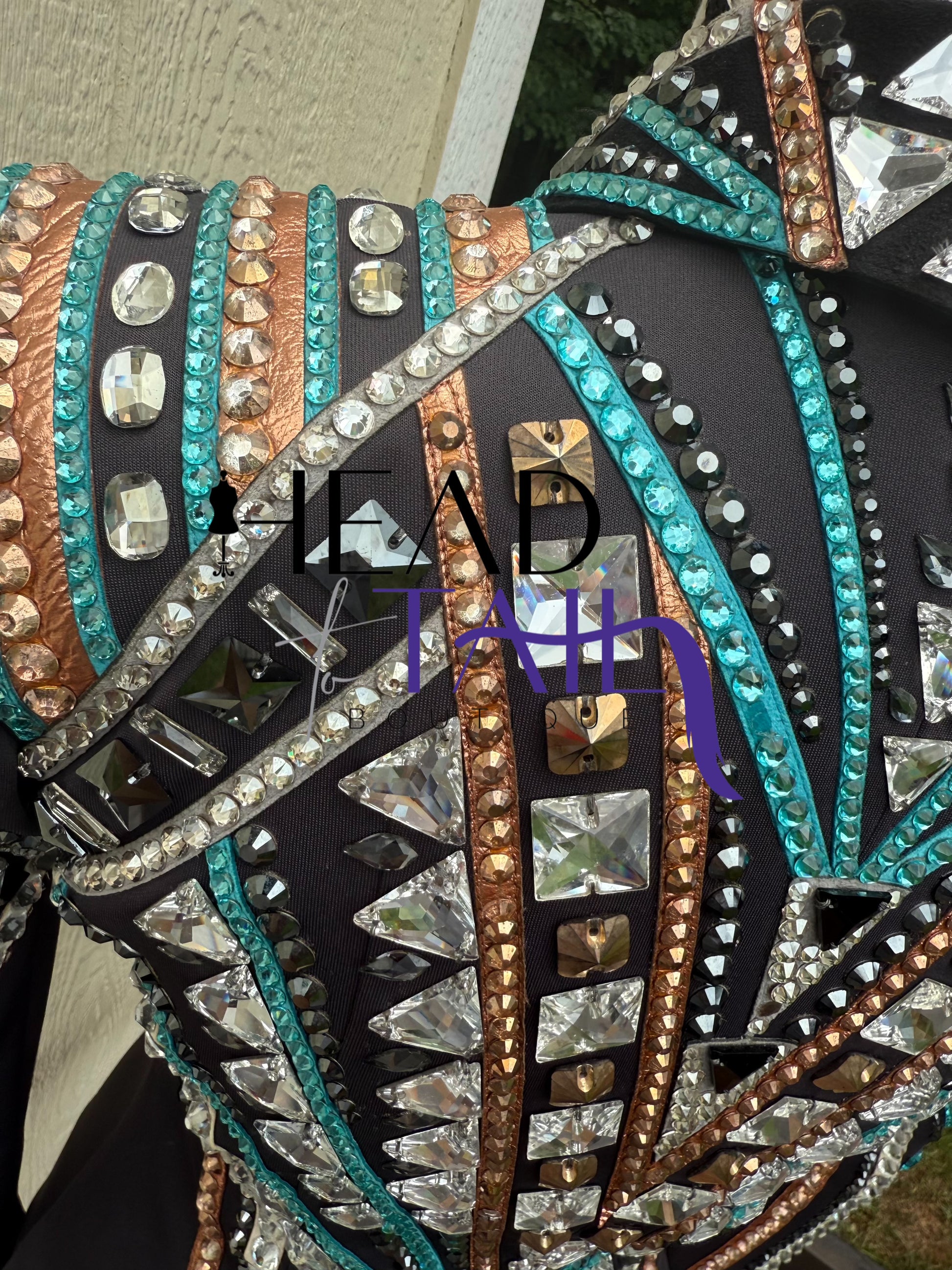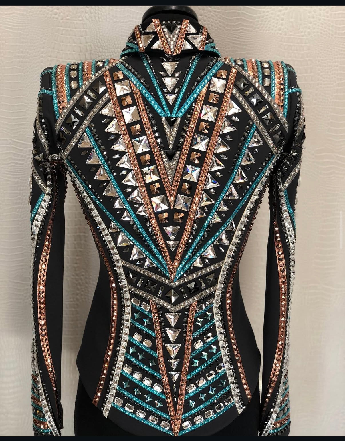 Lindsey James Show Clothing Teal, Rose Gold & Silver Showmanship Jacket - Youth Large/Adult X-Small