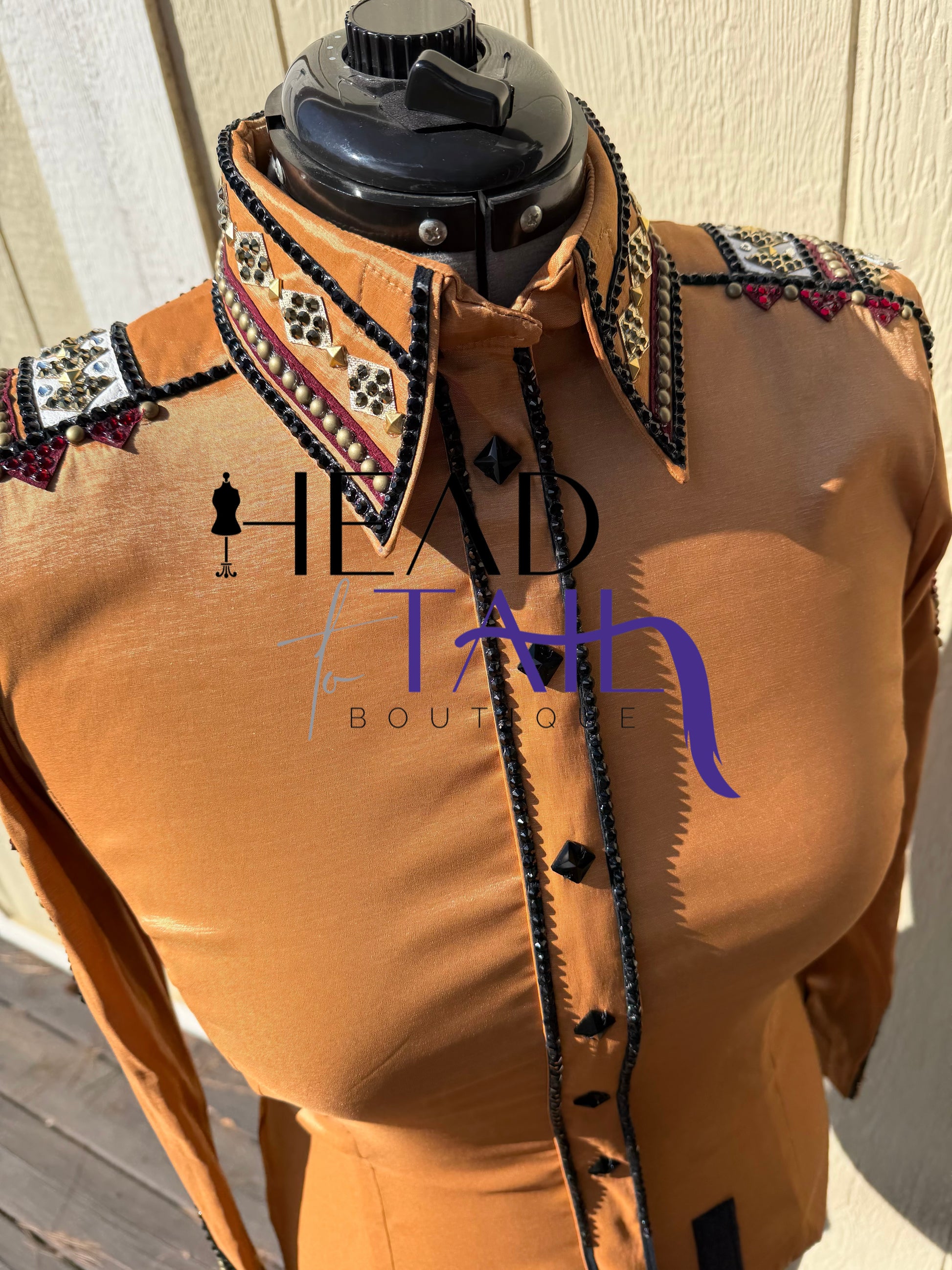 Sara Longworth Gold, Burgundy & White Shirt - Medium