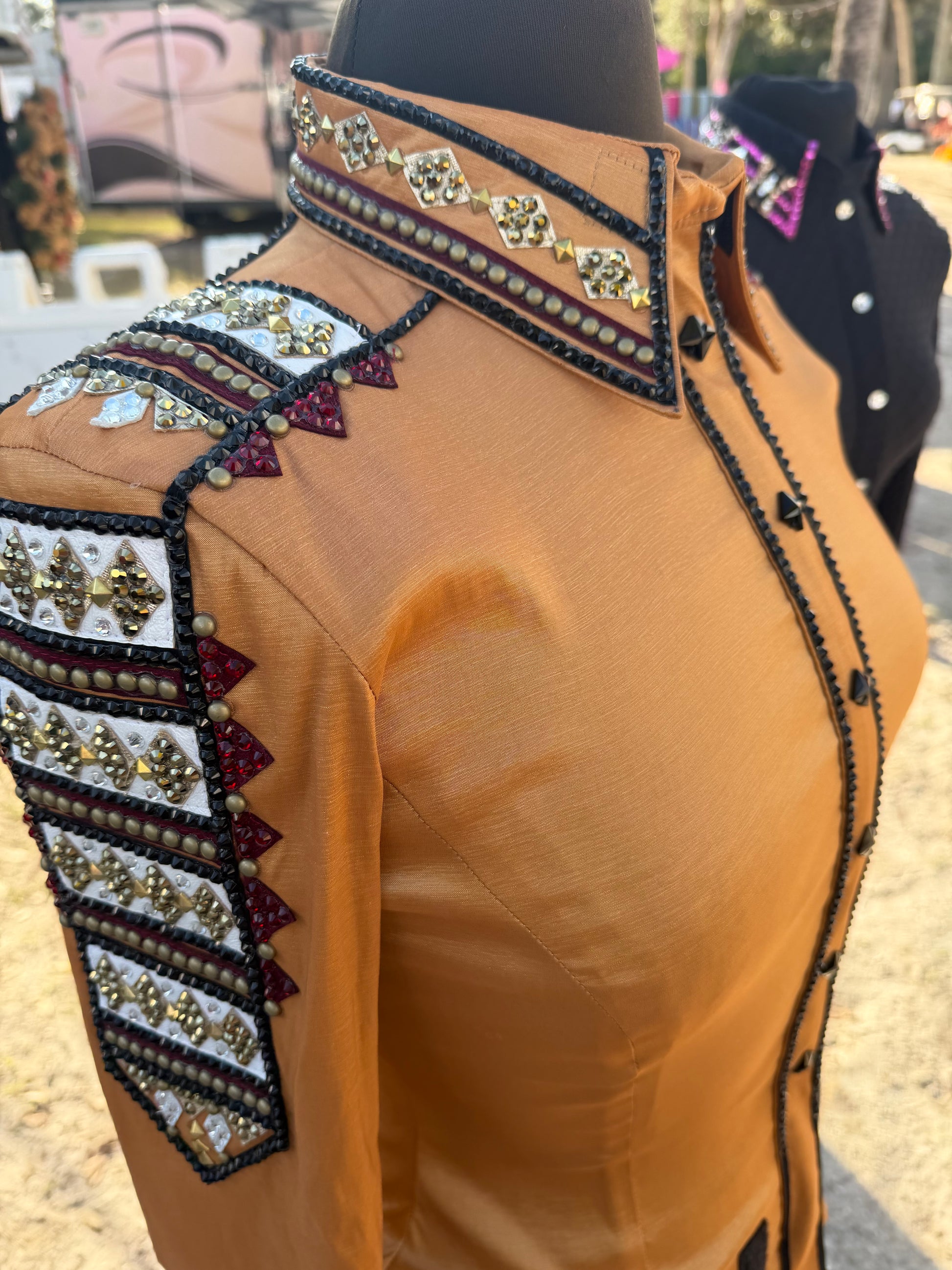 Sara Longworth Gold, Burgubdy & Brown Shirt - Mediun/Large