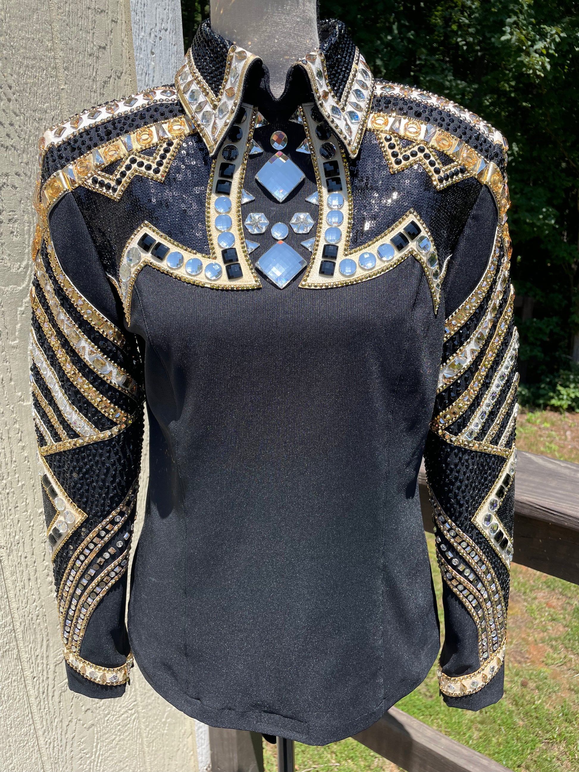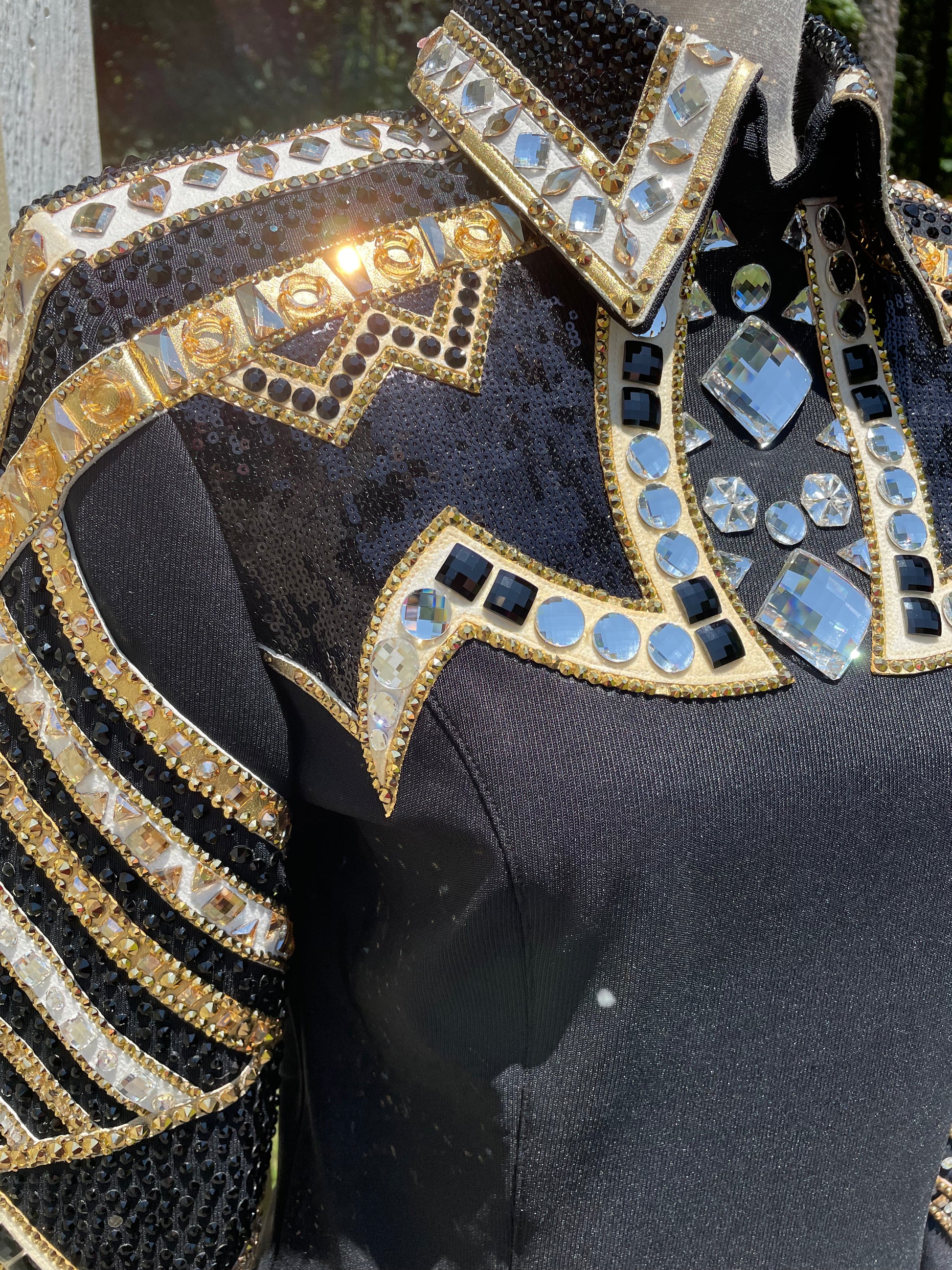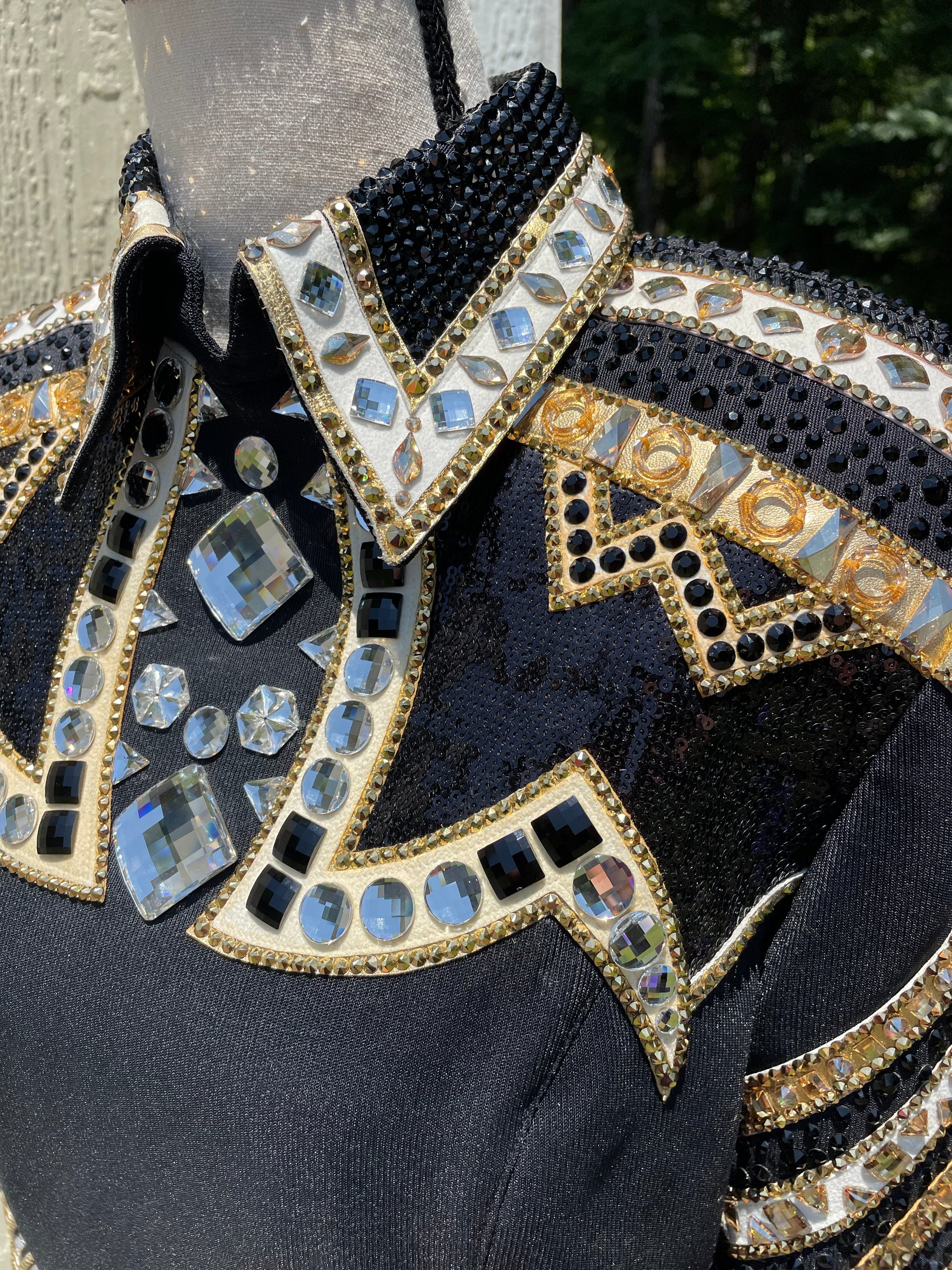 One of a Kind Black, White & Gold Horsemanship Shirt - FINAL SALE