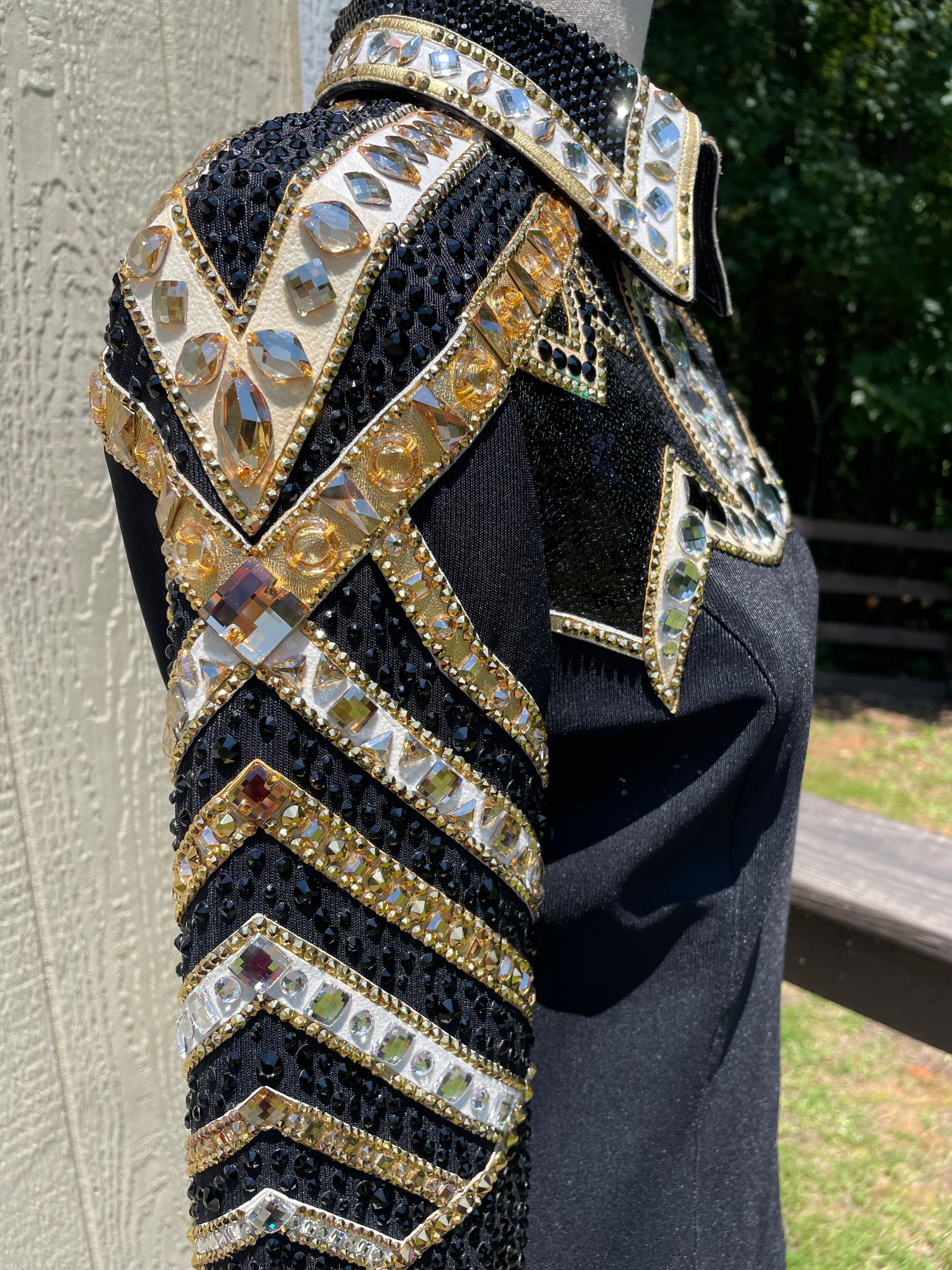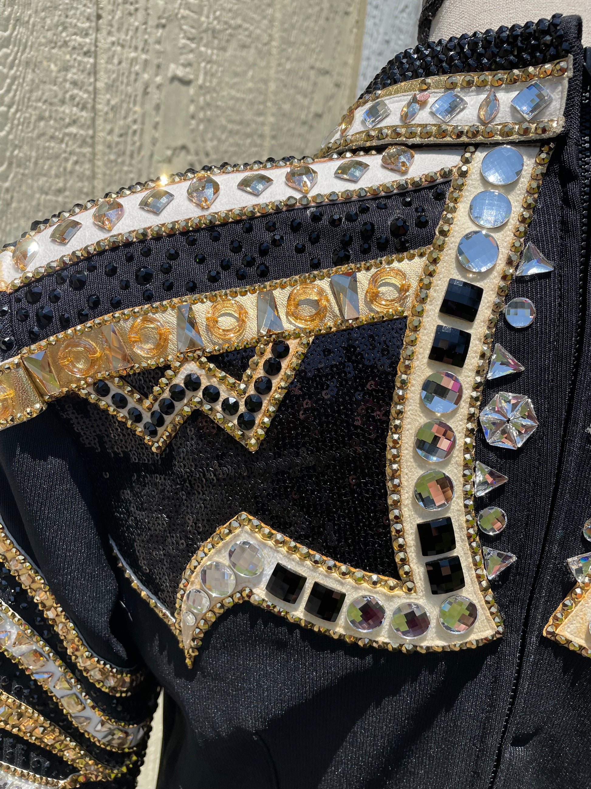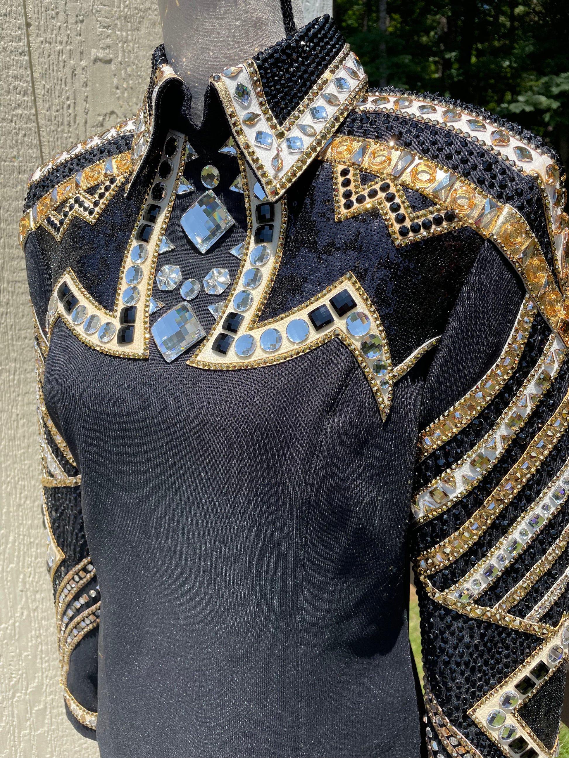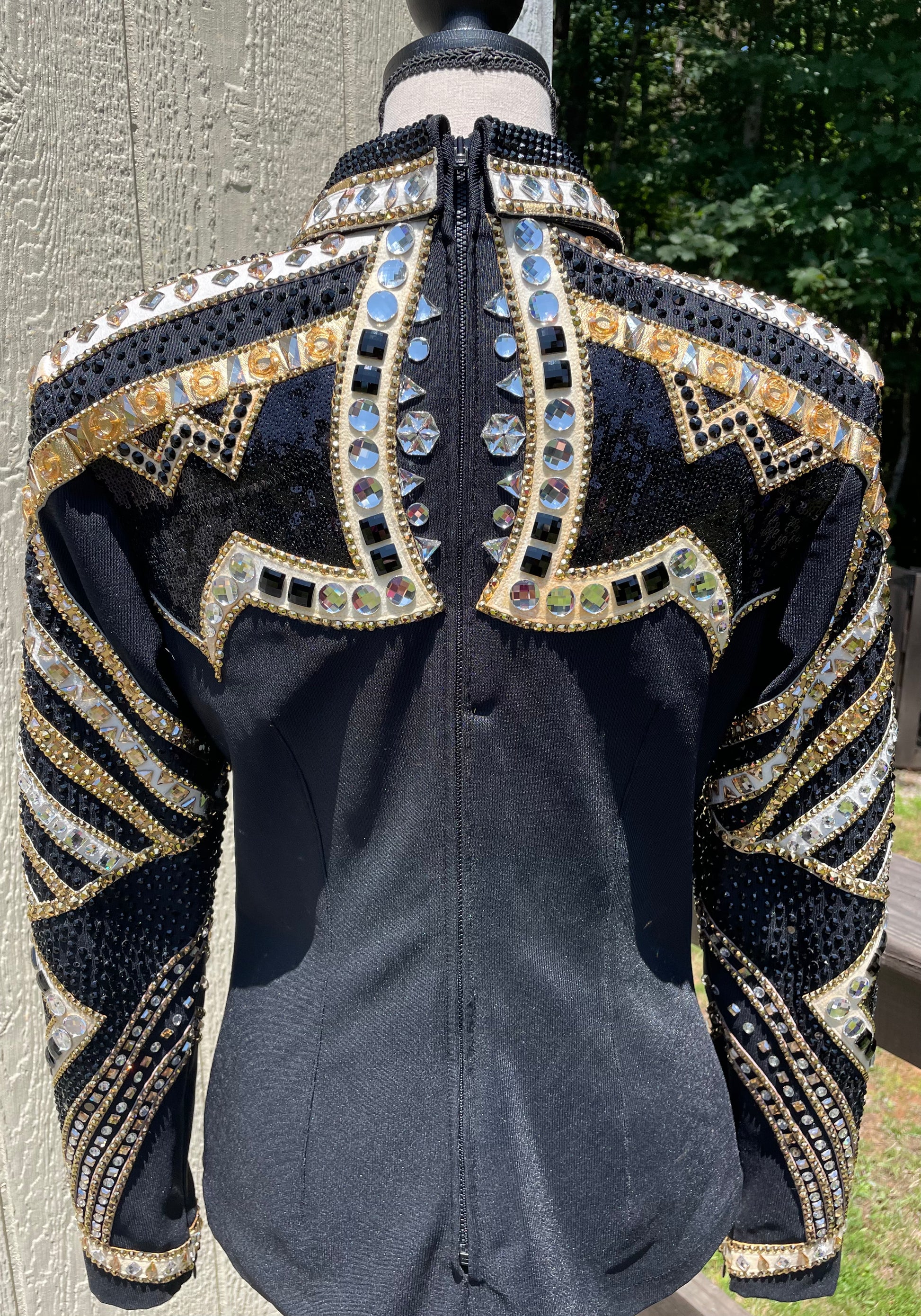 One of a Kind Black, White & Gold Horsemanship Shirt - FINAL SALE