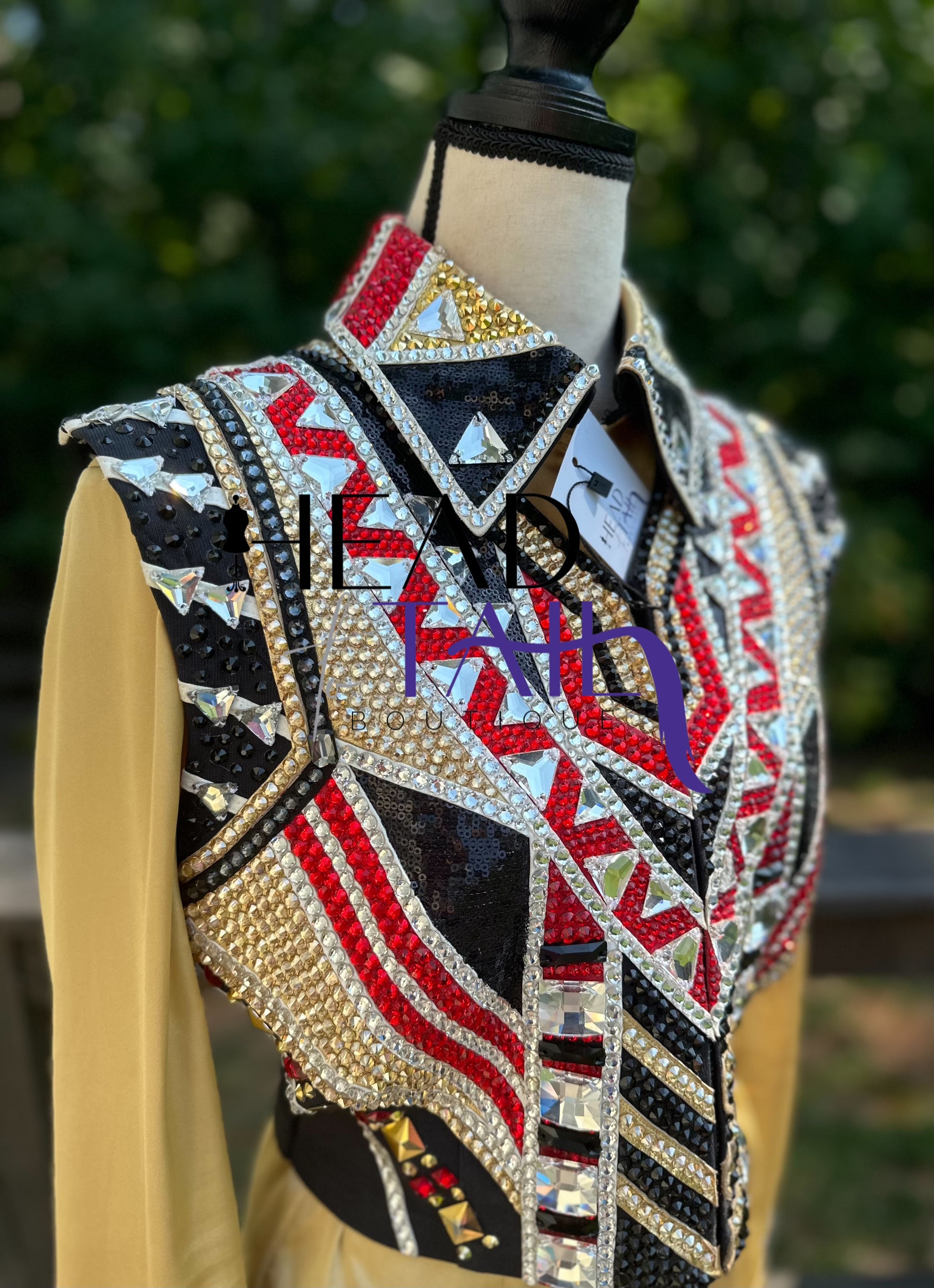 One of a Kind Red, Gold & Black Shirt + Vest - Medium
