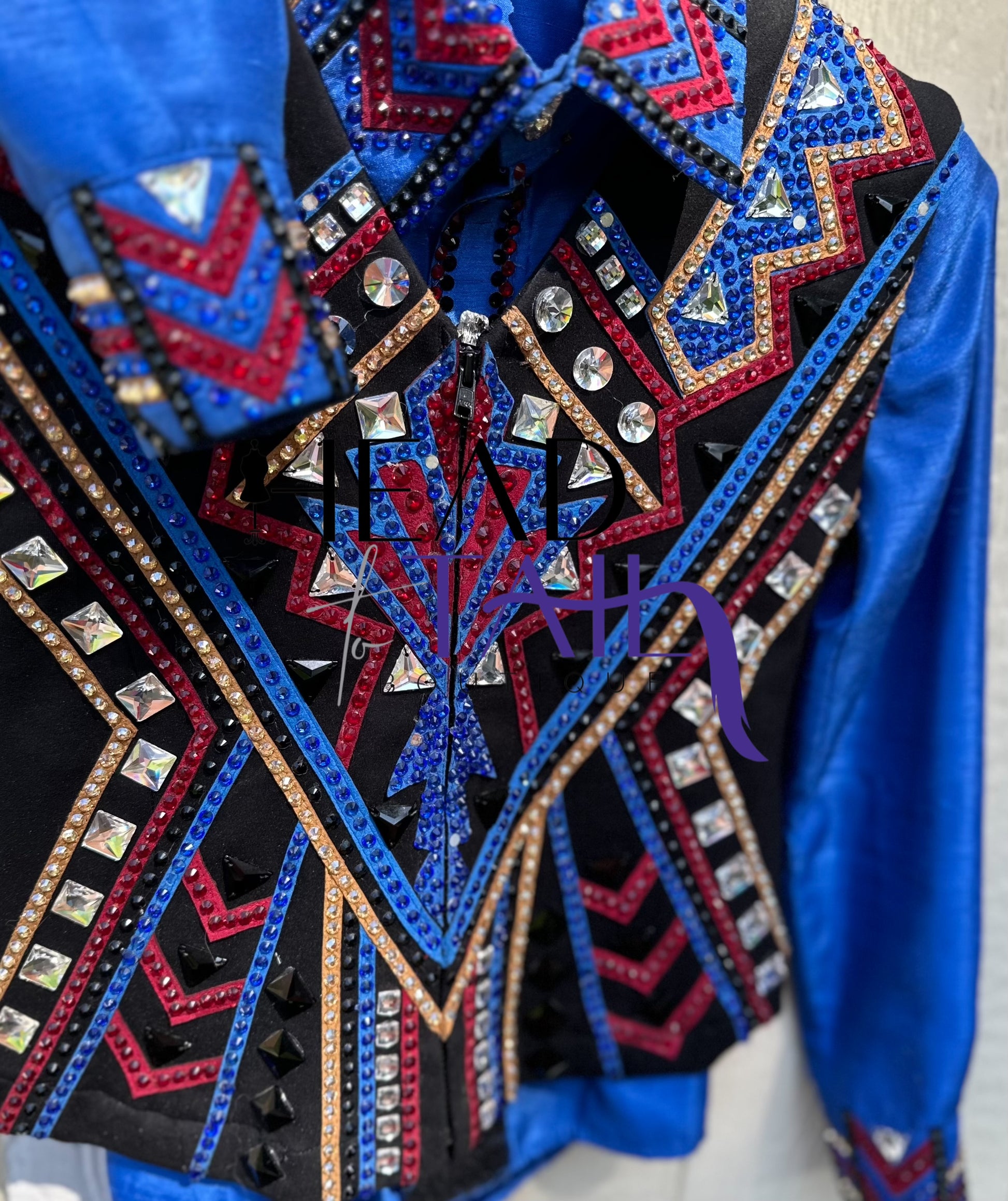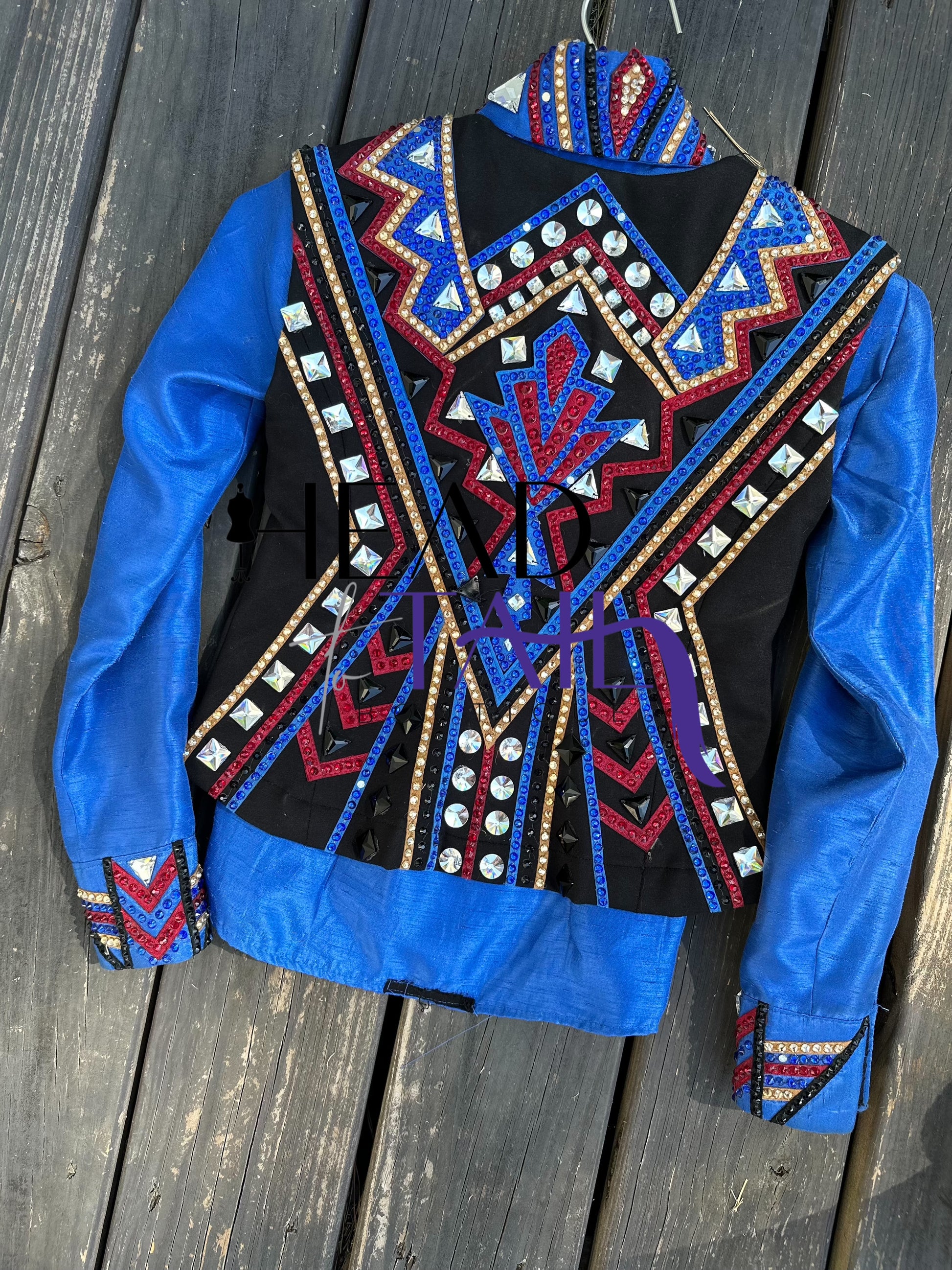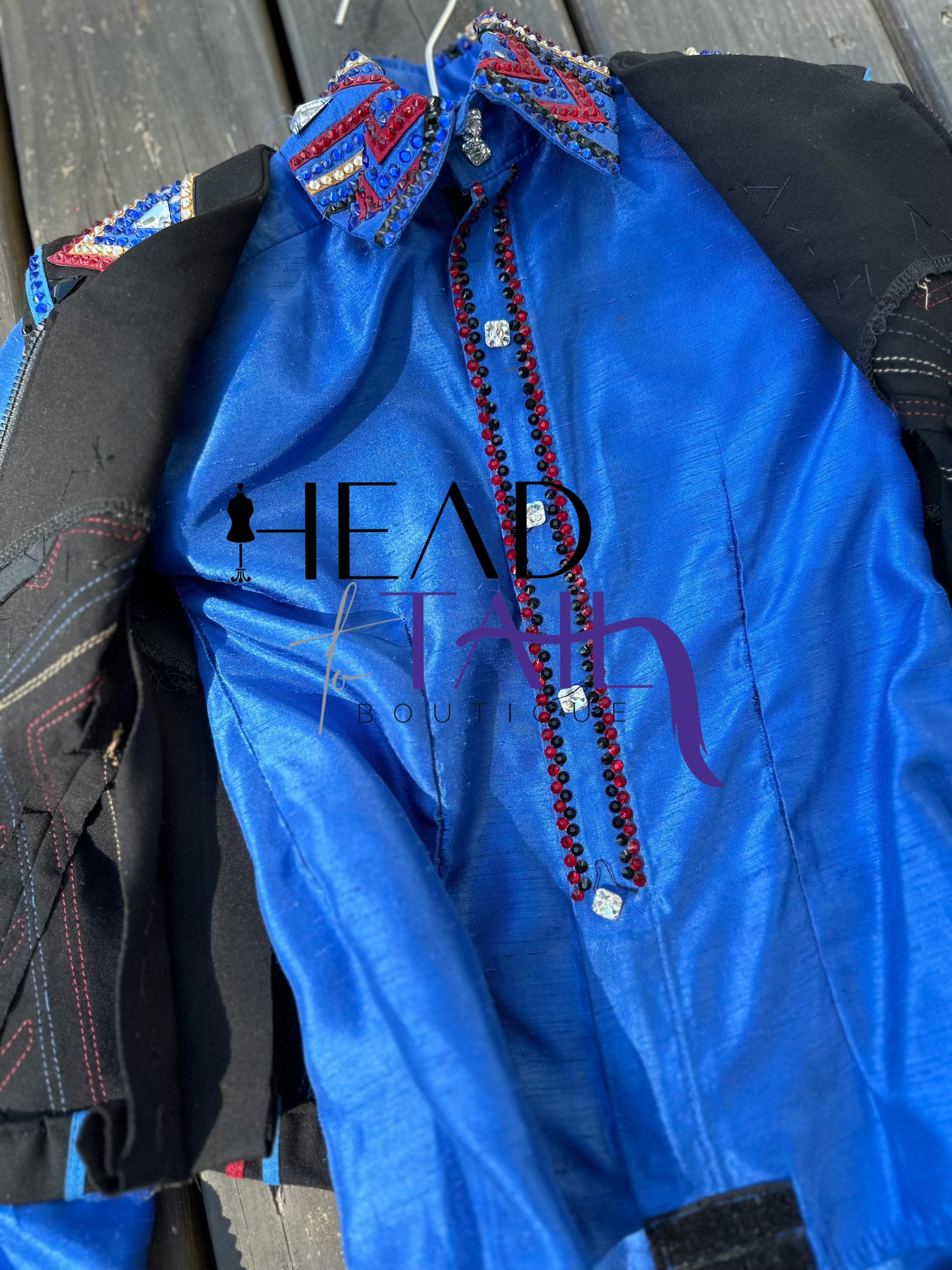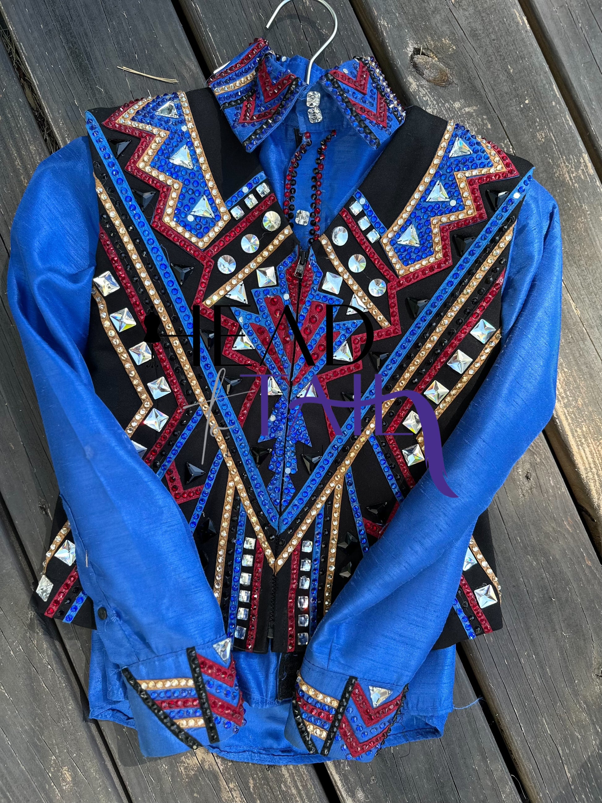 One of a kind Royal Blue, Red, Gold Vest Set - YOUTH - FINAL SALE