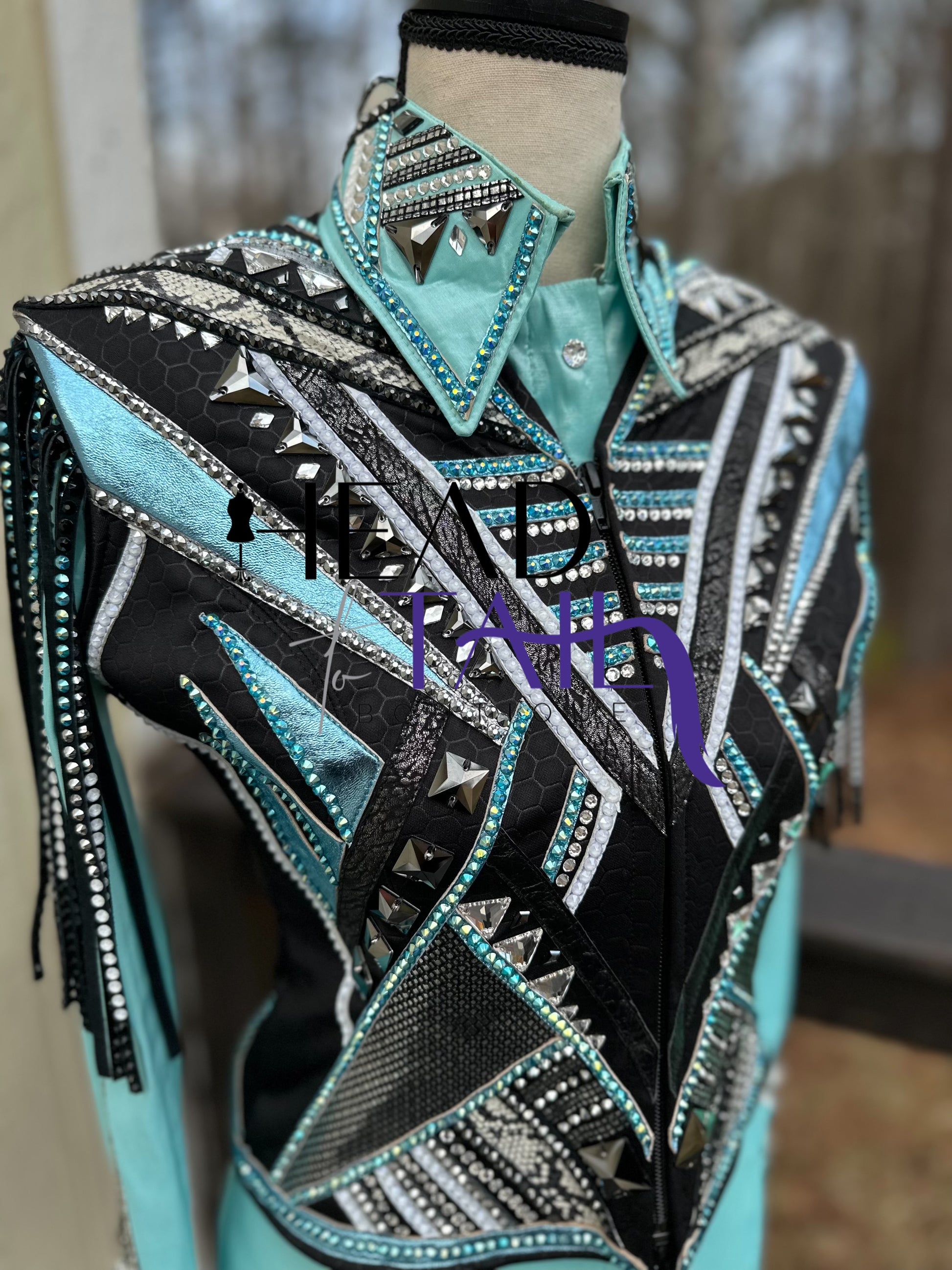 Southern Designs by Shannon Mint. Grey Snakeskin & Blake Day Shirt & Bolero Vest - Small/Medium