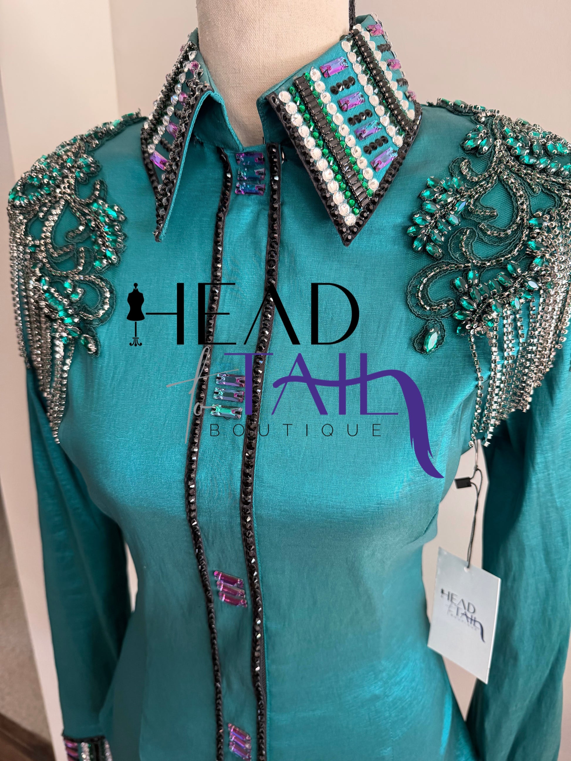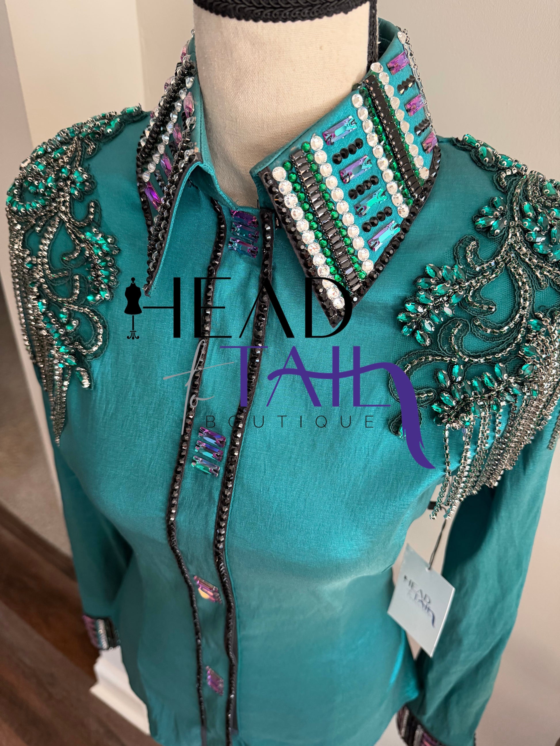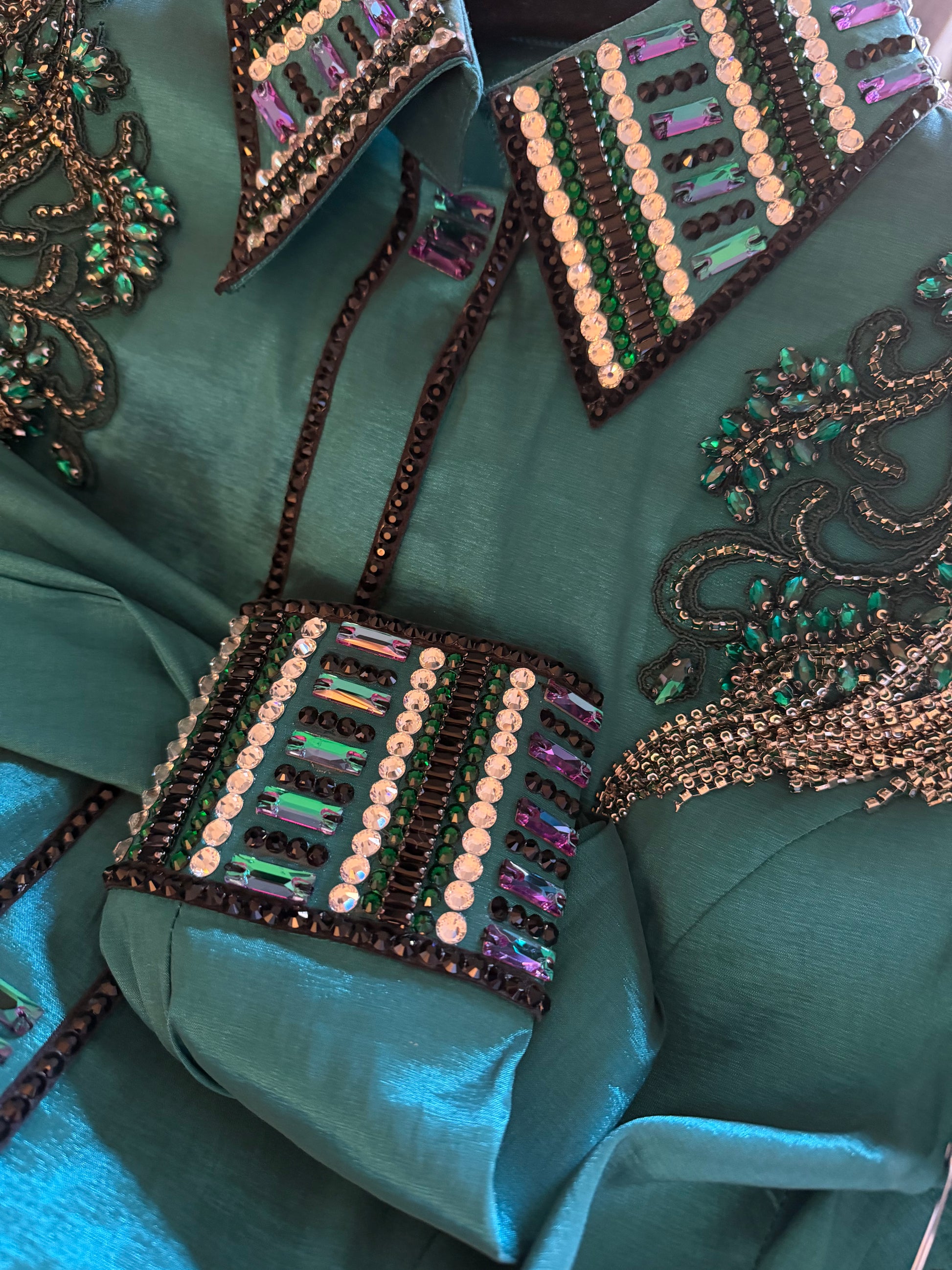 Unbridled Couture Emerald w/ Purple Hint Shoulder Design Day Shirt - Small