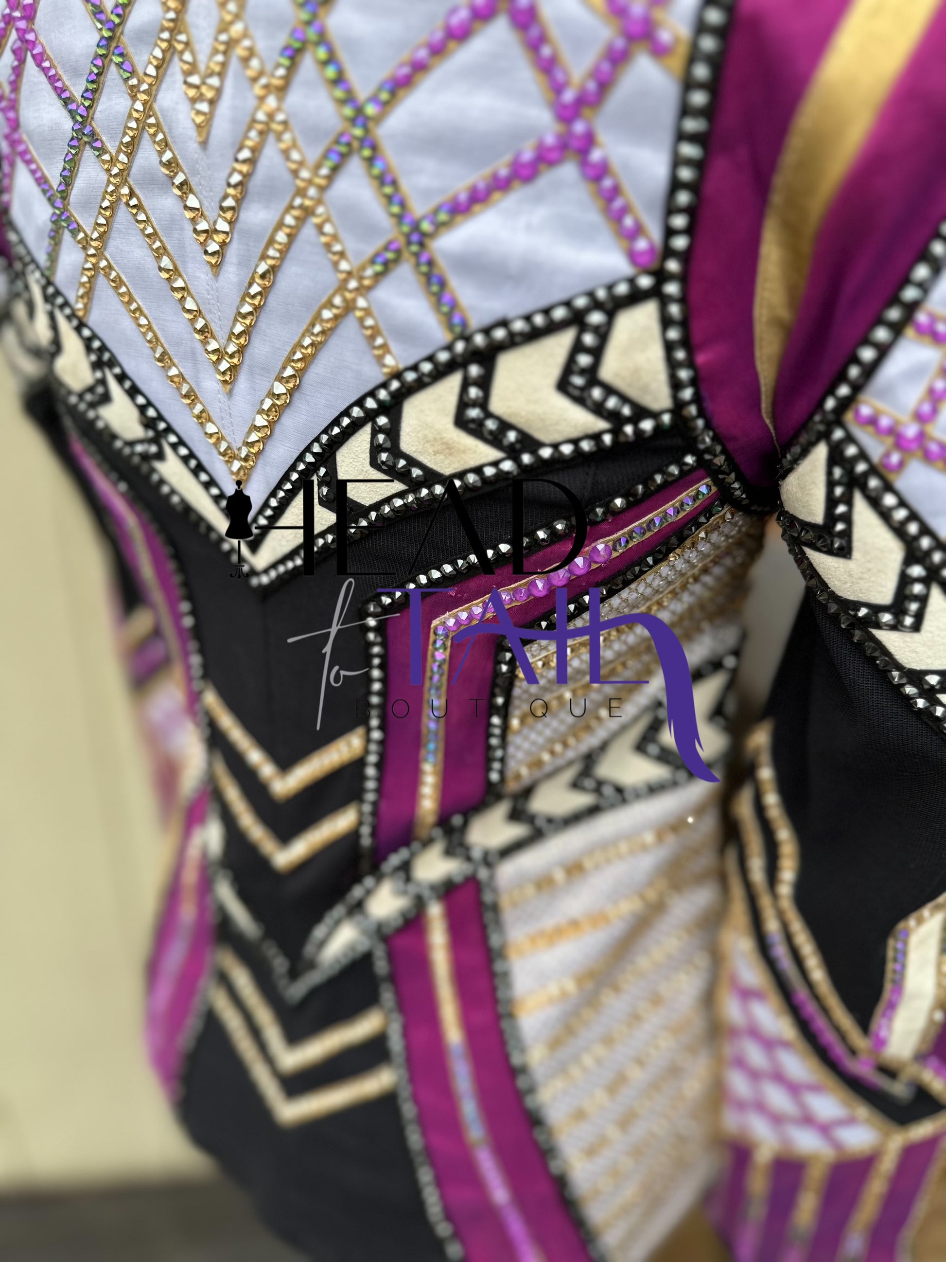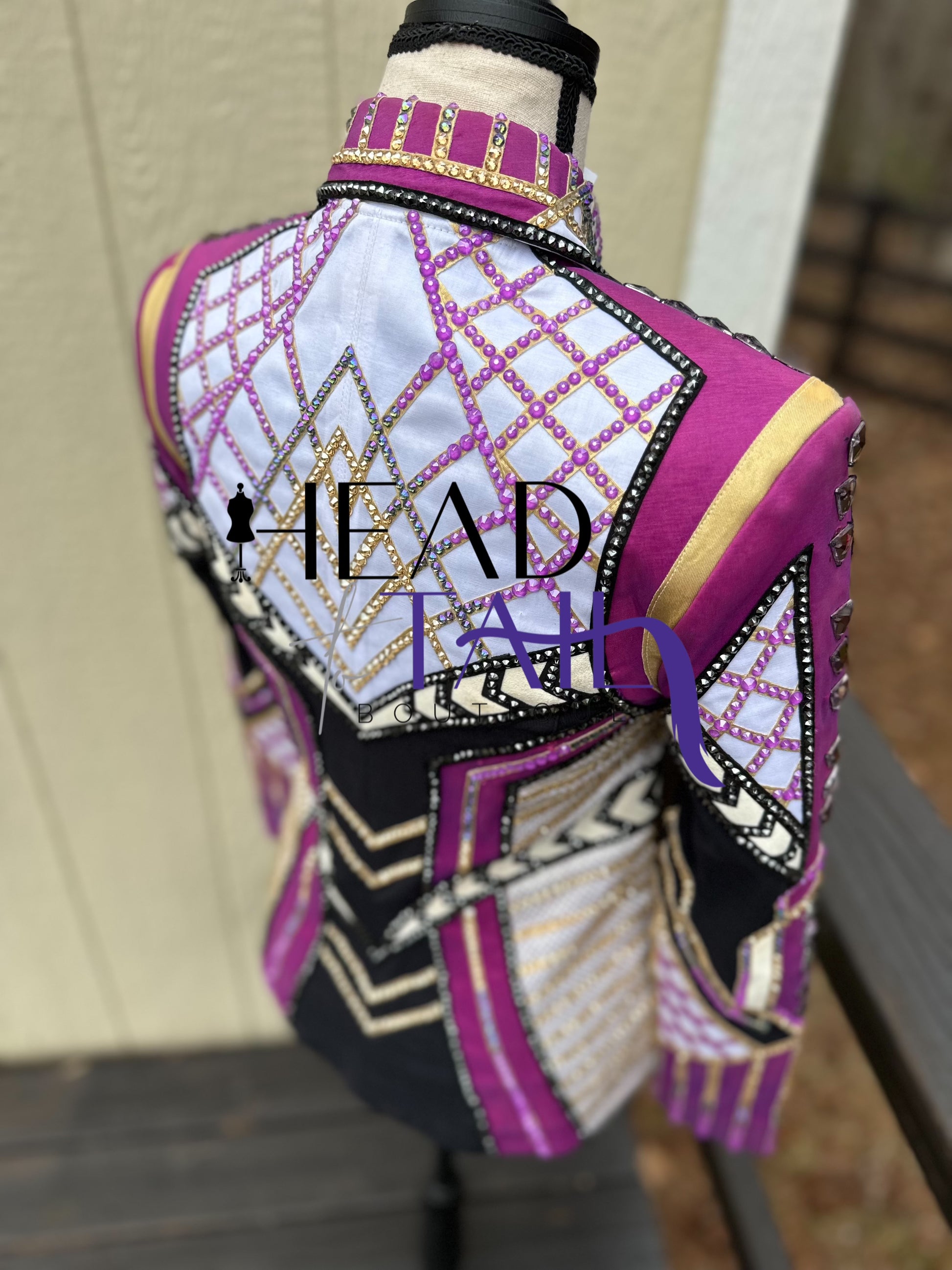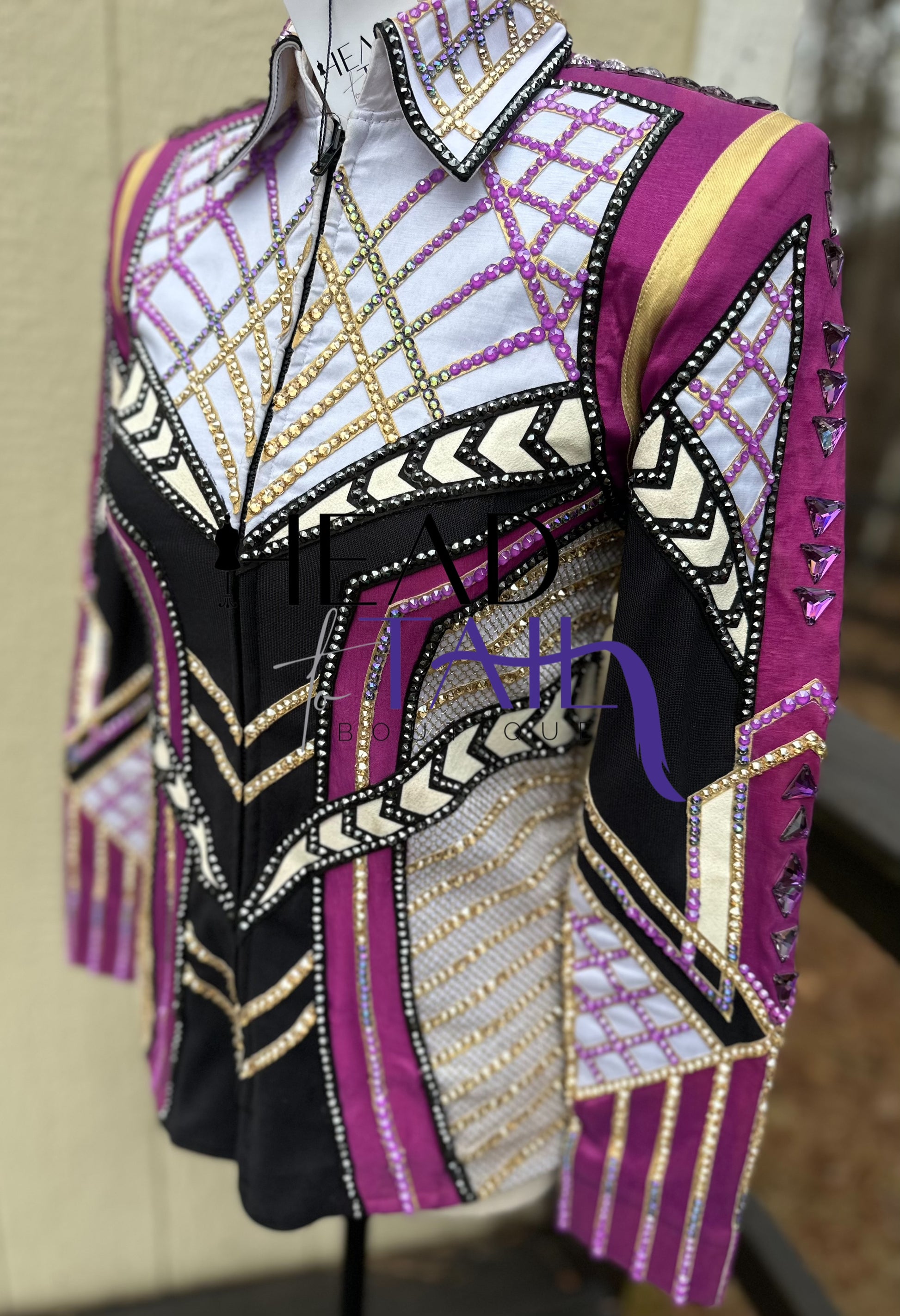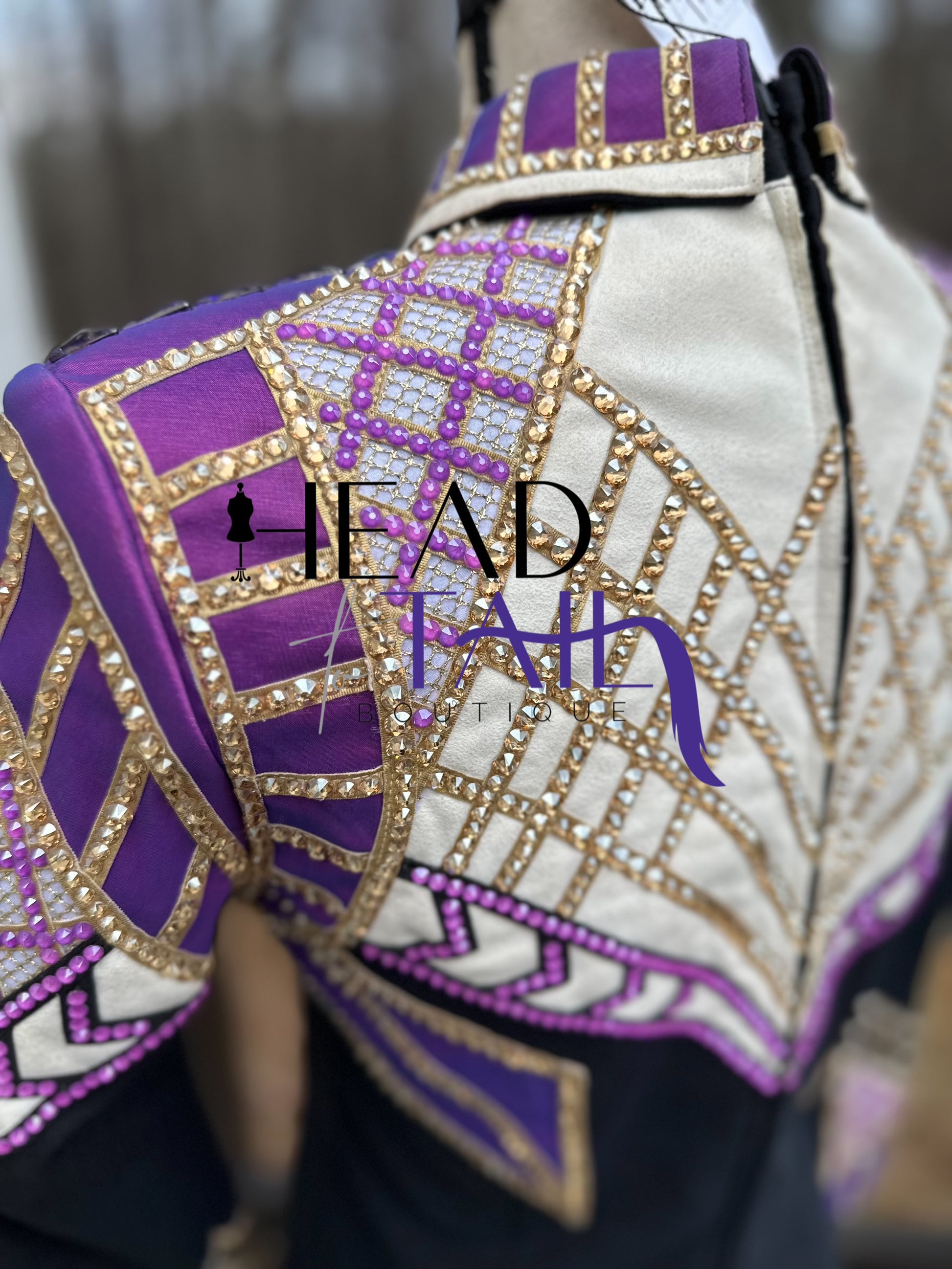 Unbridled Couture Showmanship, Horsemanship, Vest & Day Shirt Magenta Purple & Gold 4 Piece Set - YOUTH Large/ADULT XS
