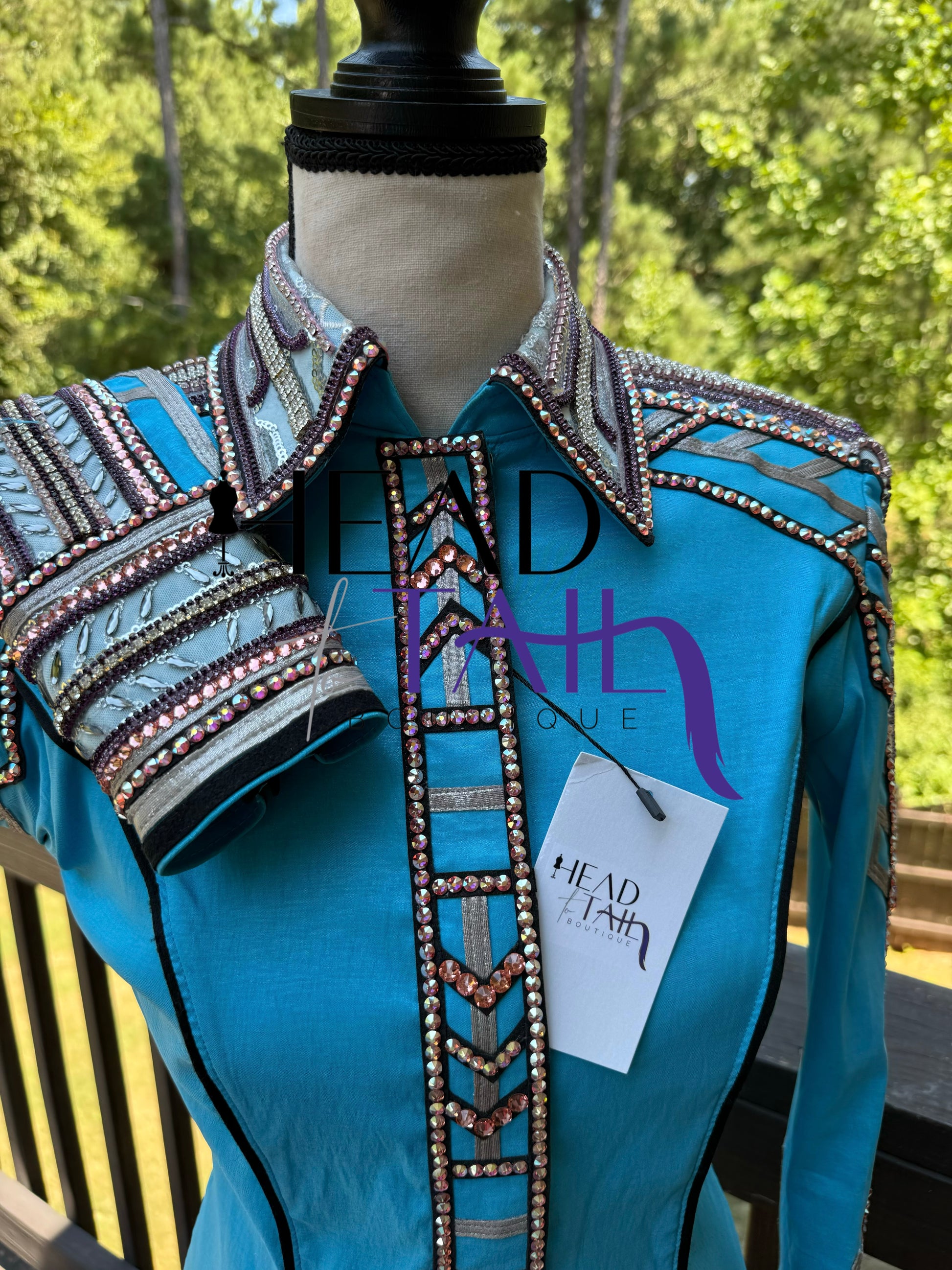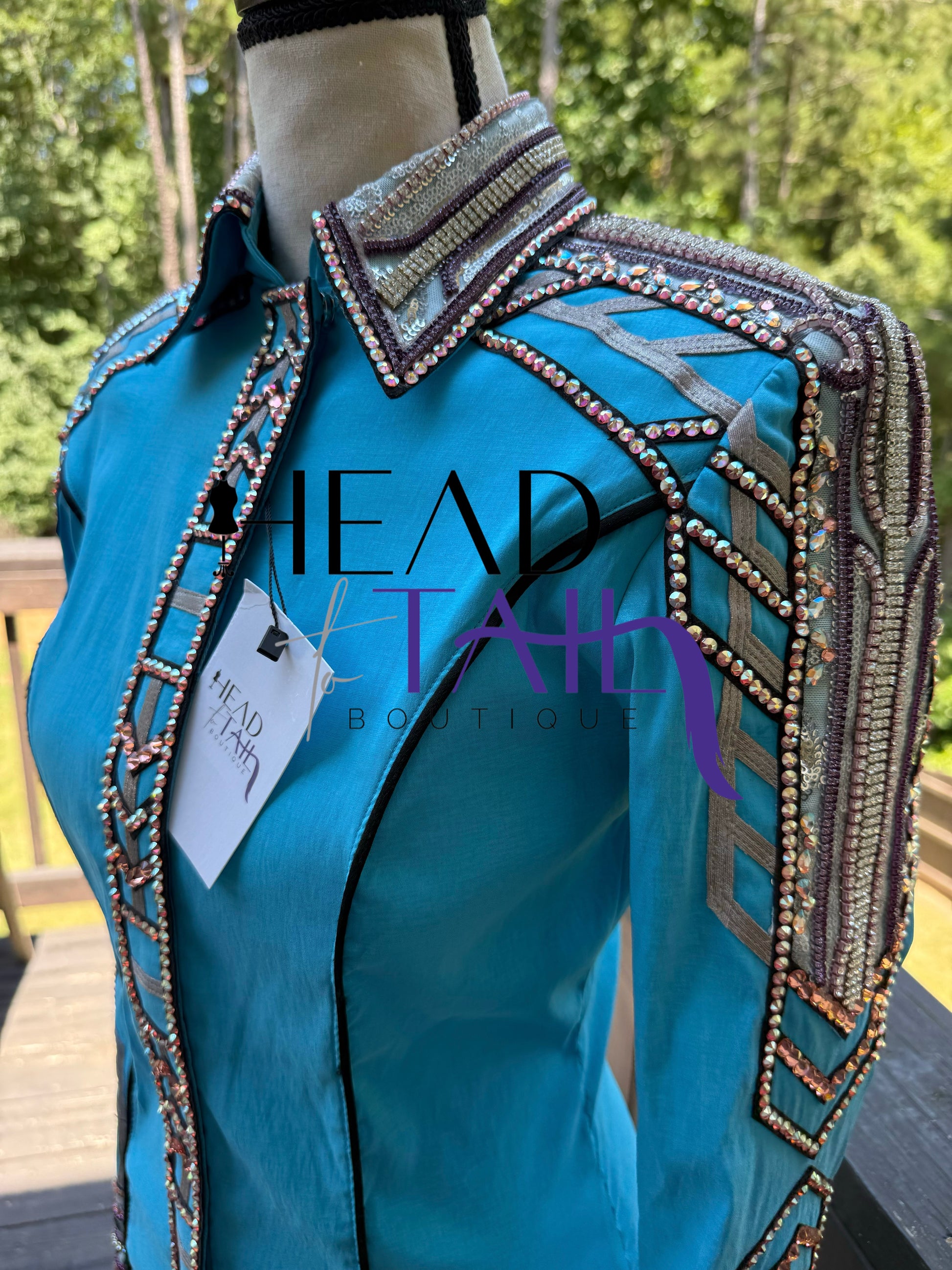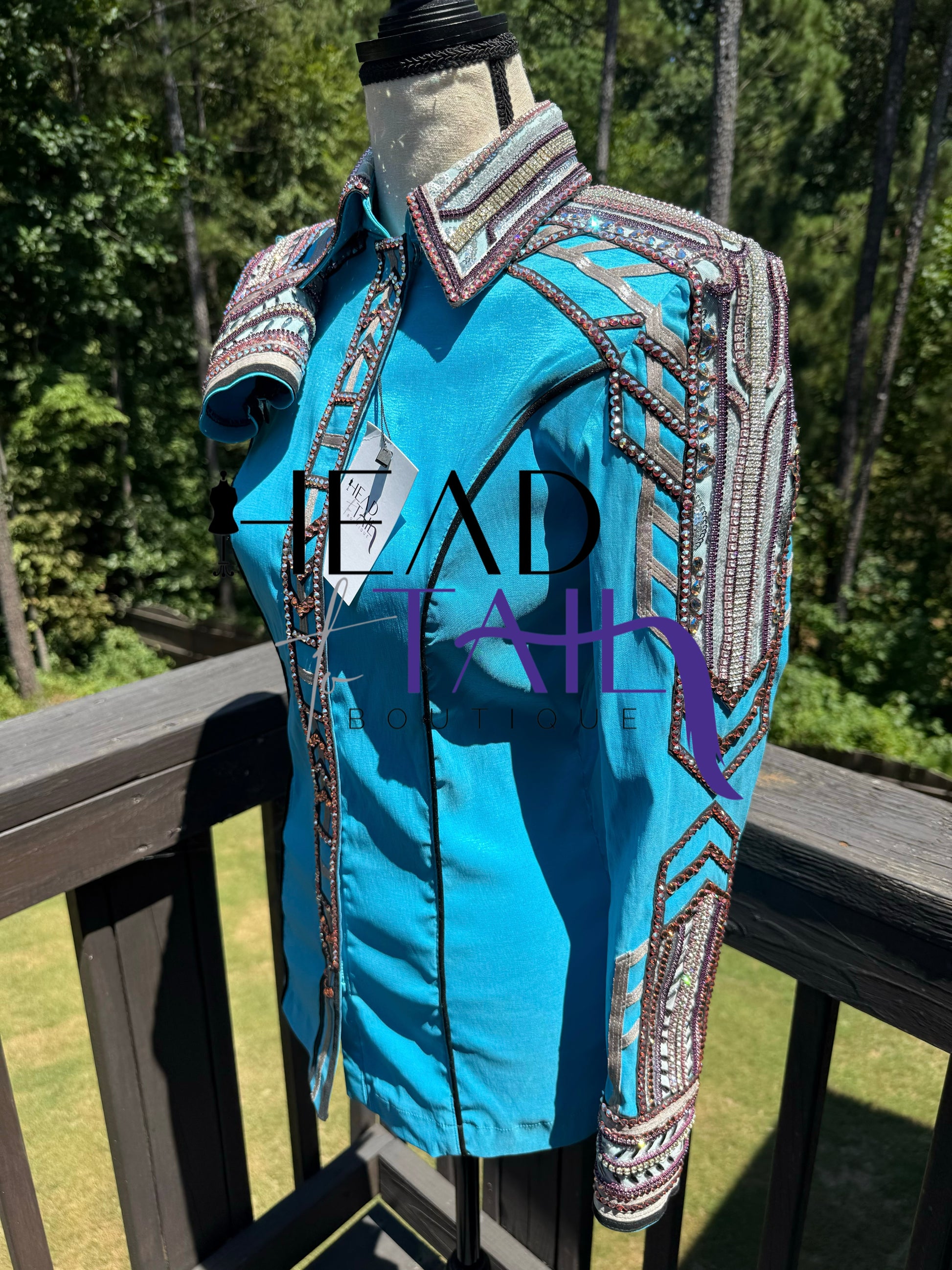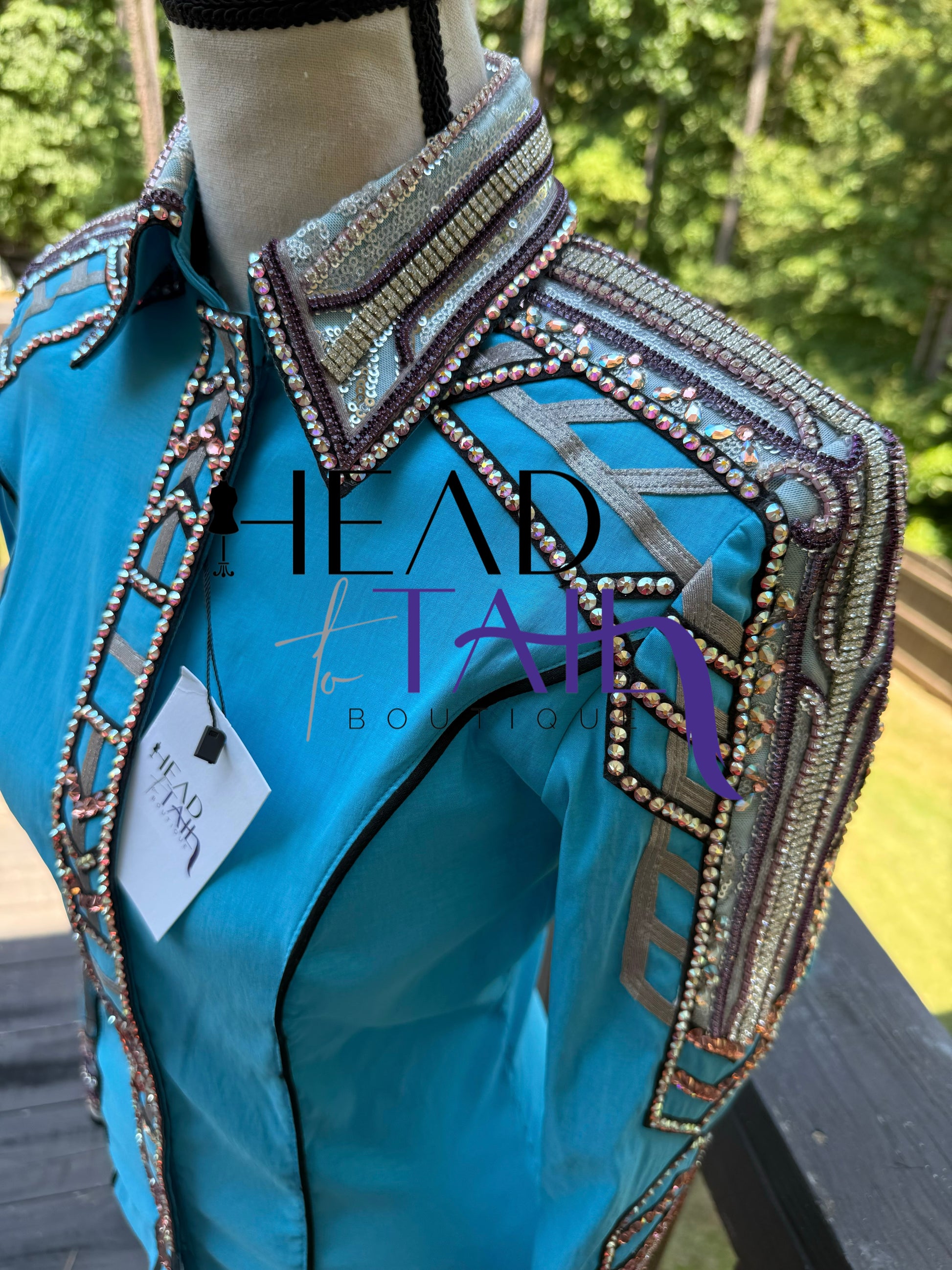Unbridled Couture Sky Blue, Silver & Lavender Day Shirt - Small/Medium