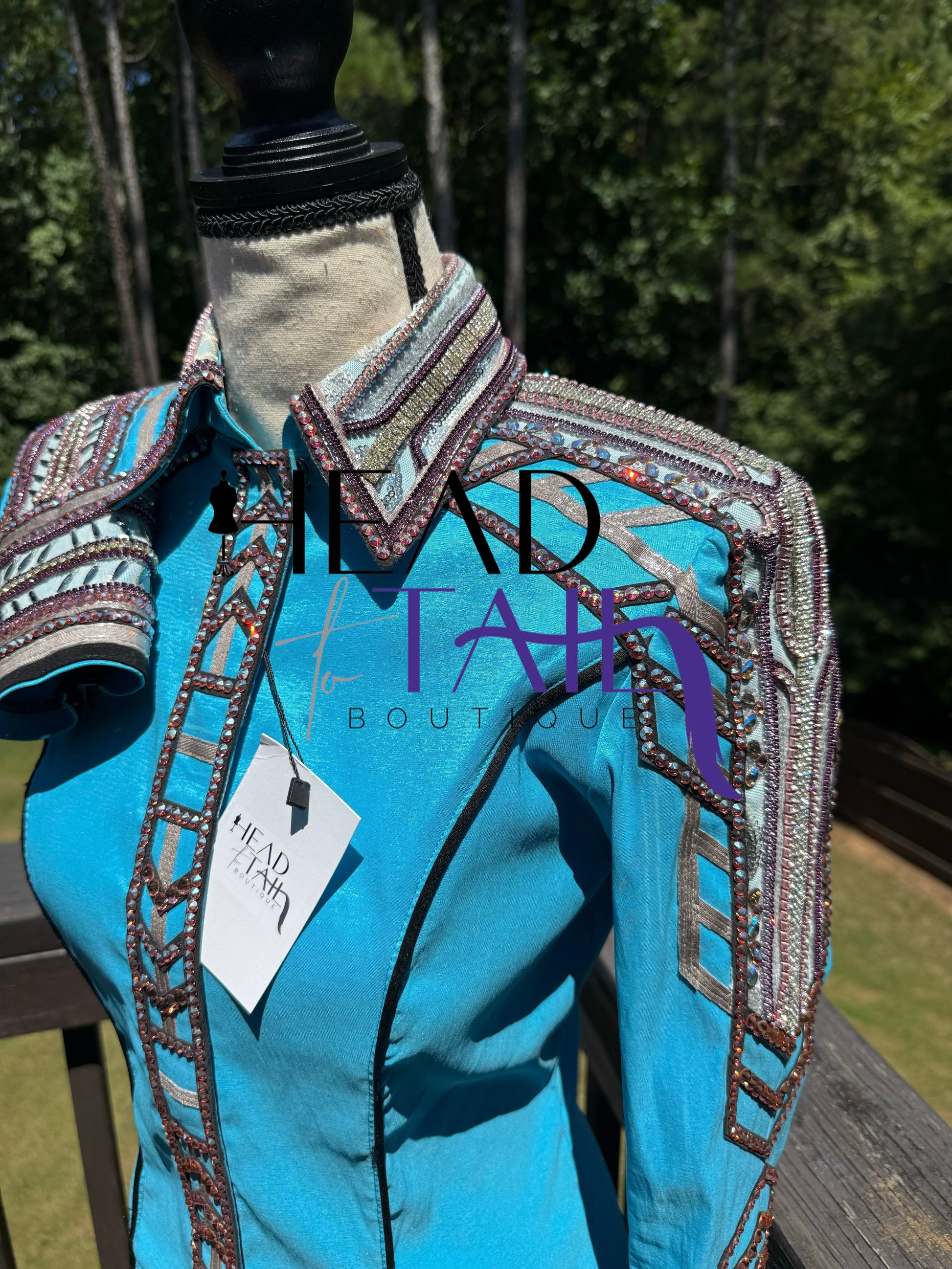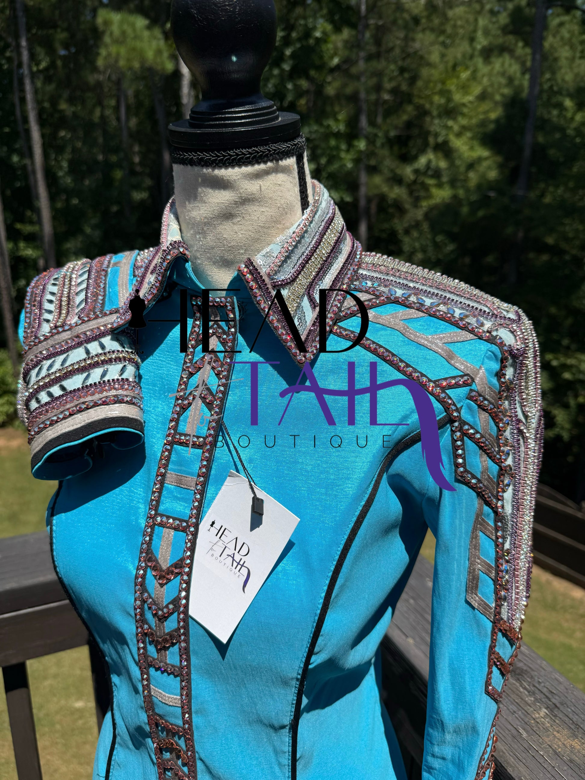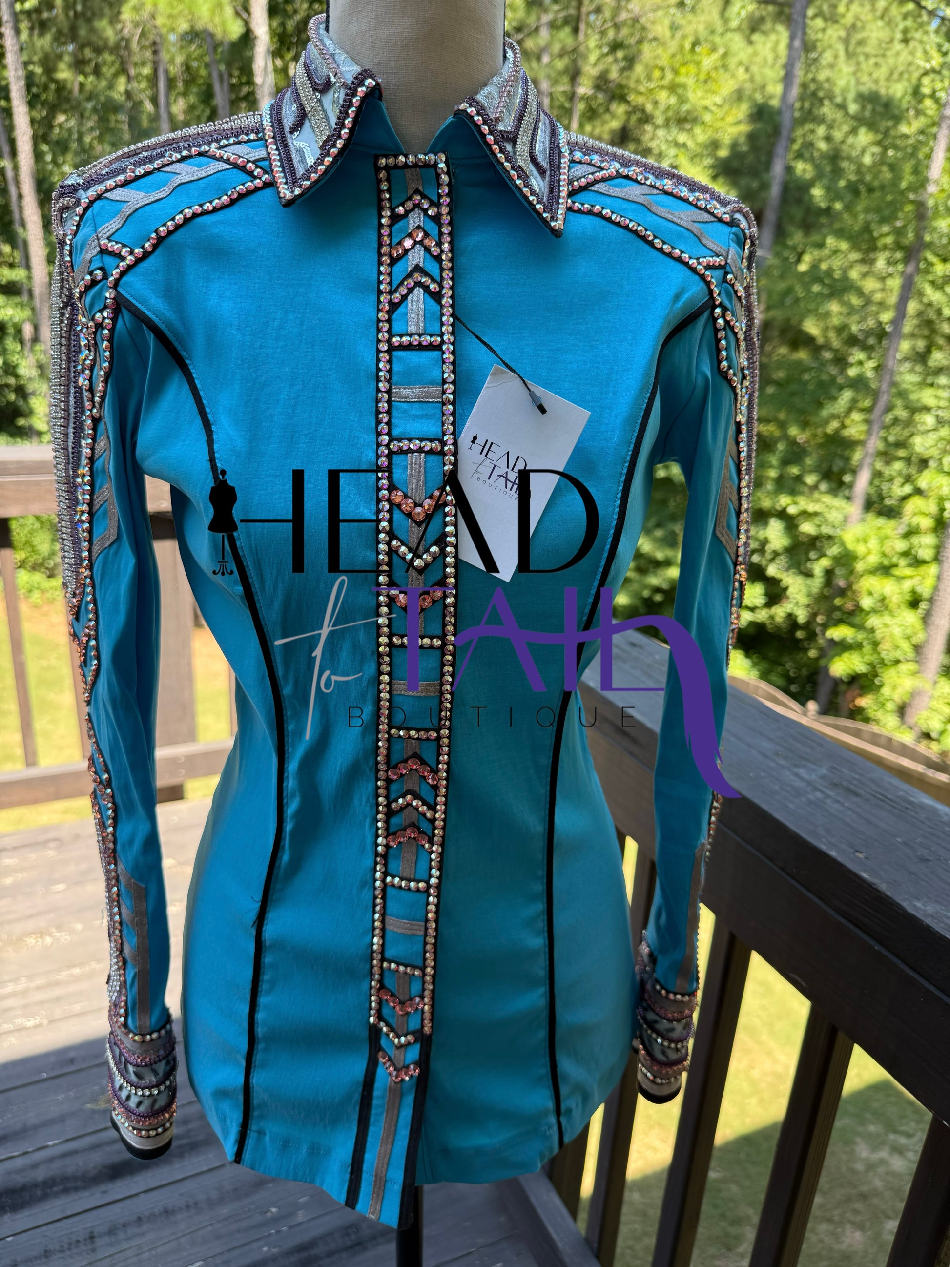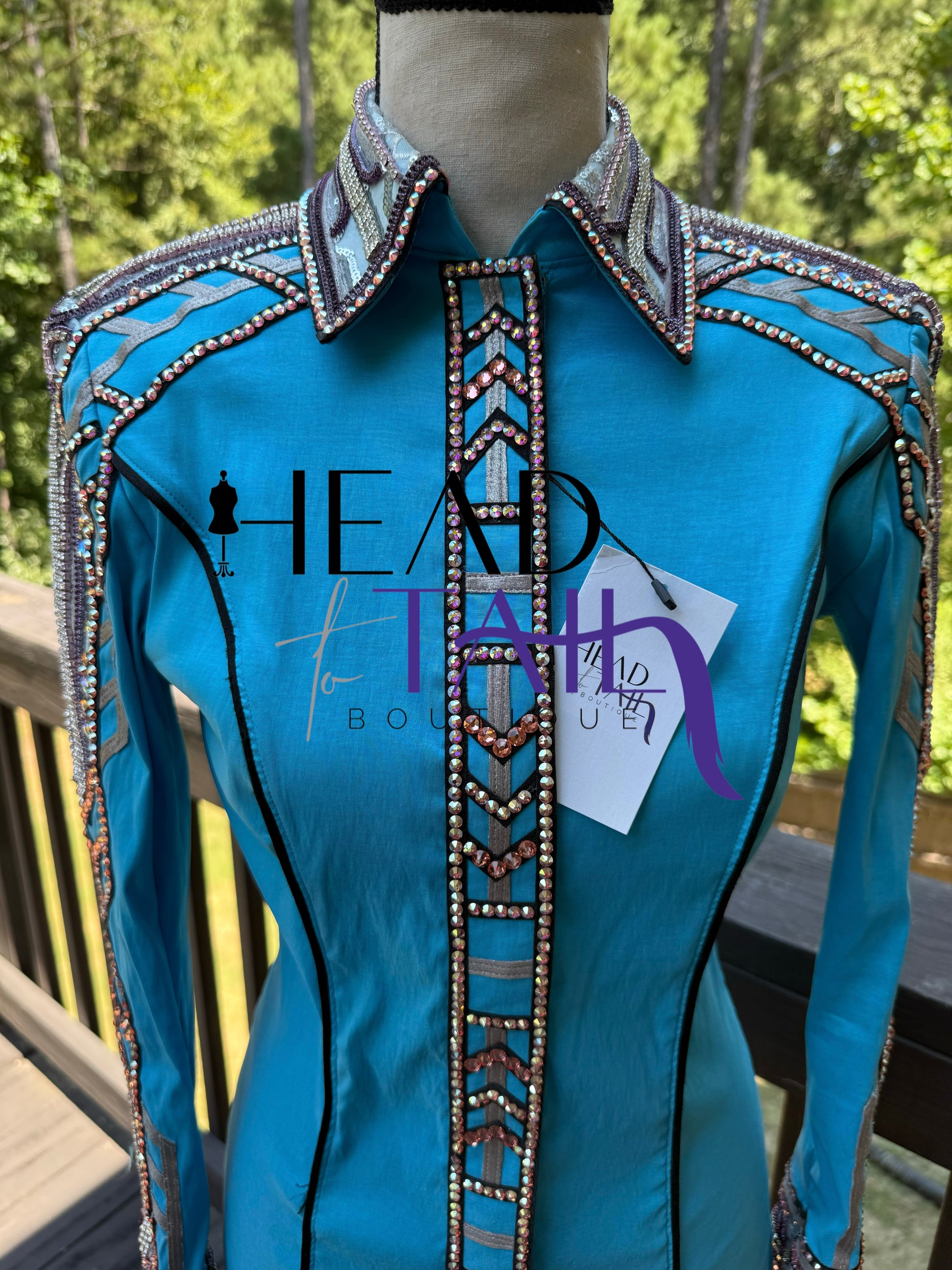 Unbridled Couture Sky Blue, Silver & Lavender Day Shirt - Small/Medium