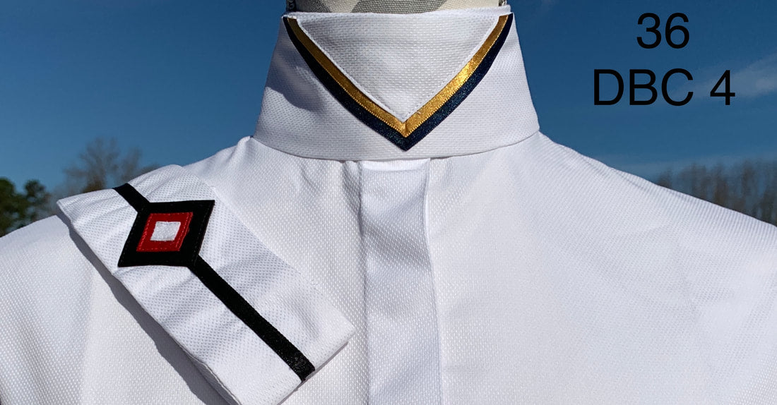 Boo Yah White Shirt Black/Gold V and Thin Navy Piping Collars - Size 40